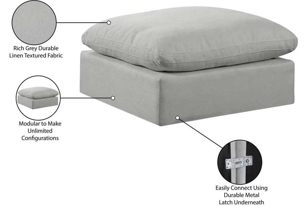 The Rolo Comfy Grey Linen Textured Fabric Upholstered Modular Ottoman is the perfect addition to any modern living space. Its rich grey fabric and overstuffed down feather cushions provide the highest level of comfort. The modular design allows for unlimited configurations to suit your needs.