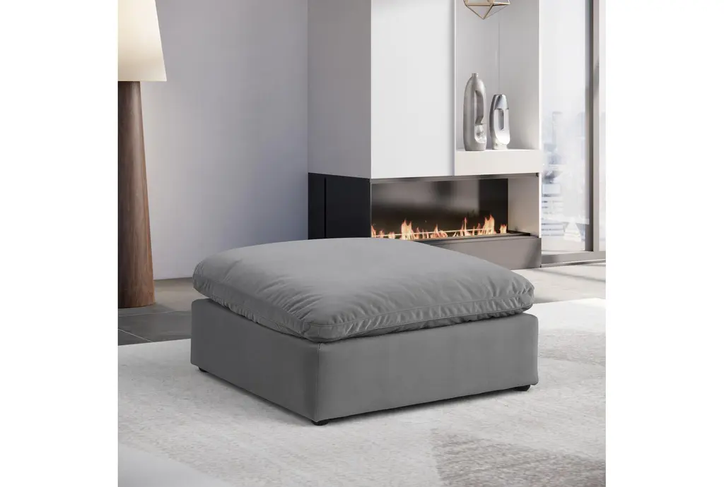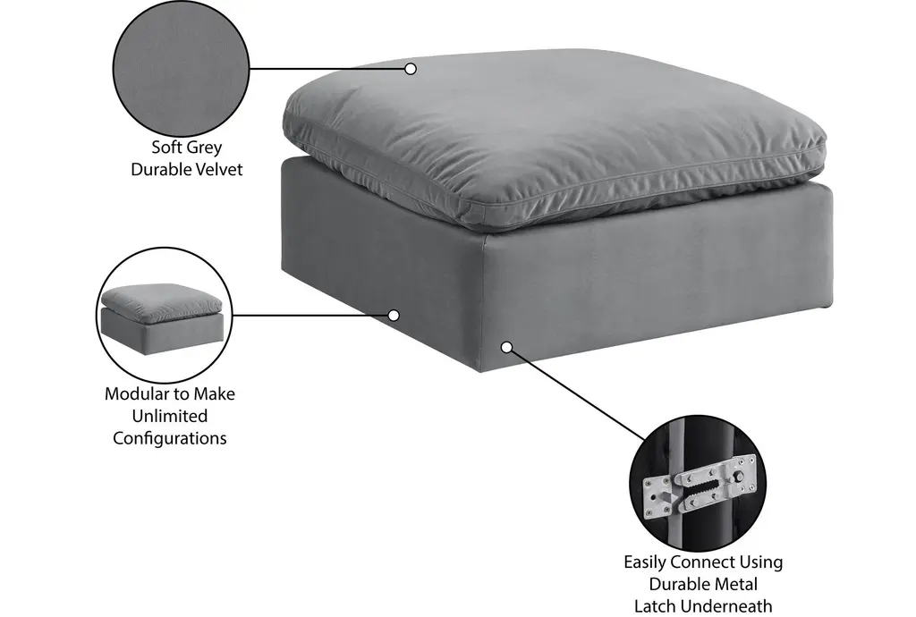 Rolo Comfy Grey Velvet Upholstered Modular Ottoman | Rectangle