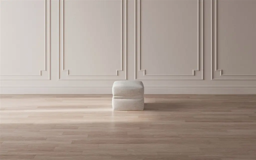 Romilly Heathered Ivory Performance Ottoman - Upholstered To Floor