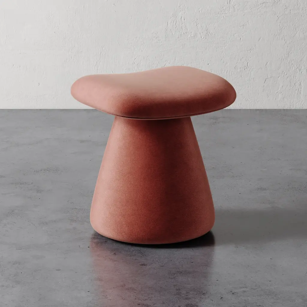 The Romy Upholstered Stool / Ottoman features a modern look with a flared pedestal base and a contoured seat for ultimate comfort. Perfect for layering into any space, it doubles as stylish extra seating for guests. The Romy stool enhances any room with its versatile design. It's an ideal choice for living areas, bedrooms, or entryways. The Romy is handmade by skilled artisans in North Carolina.