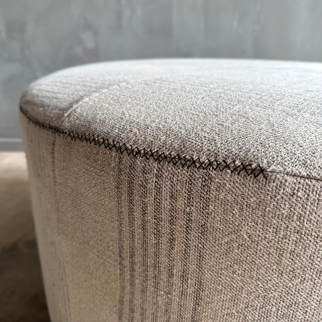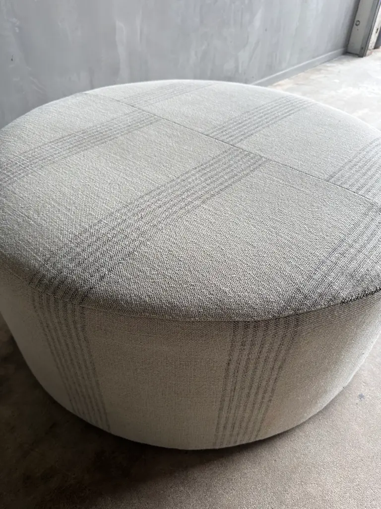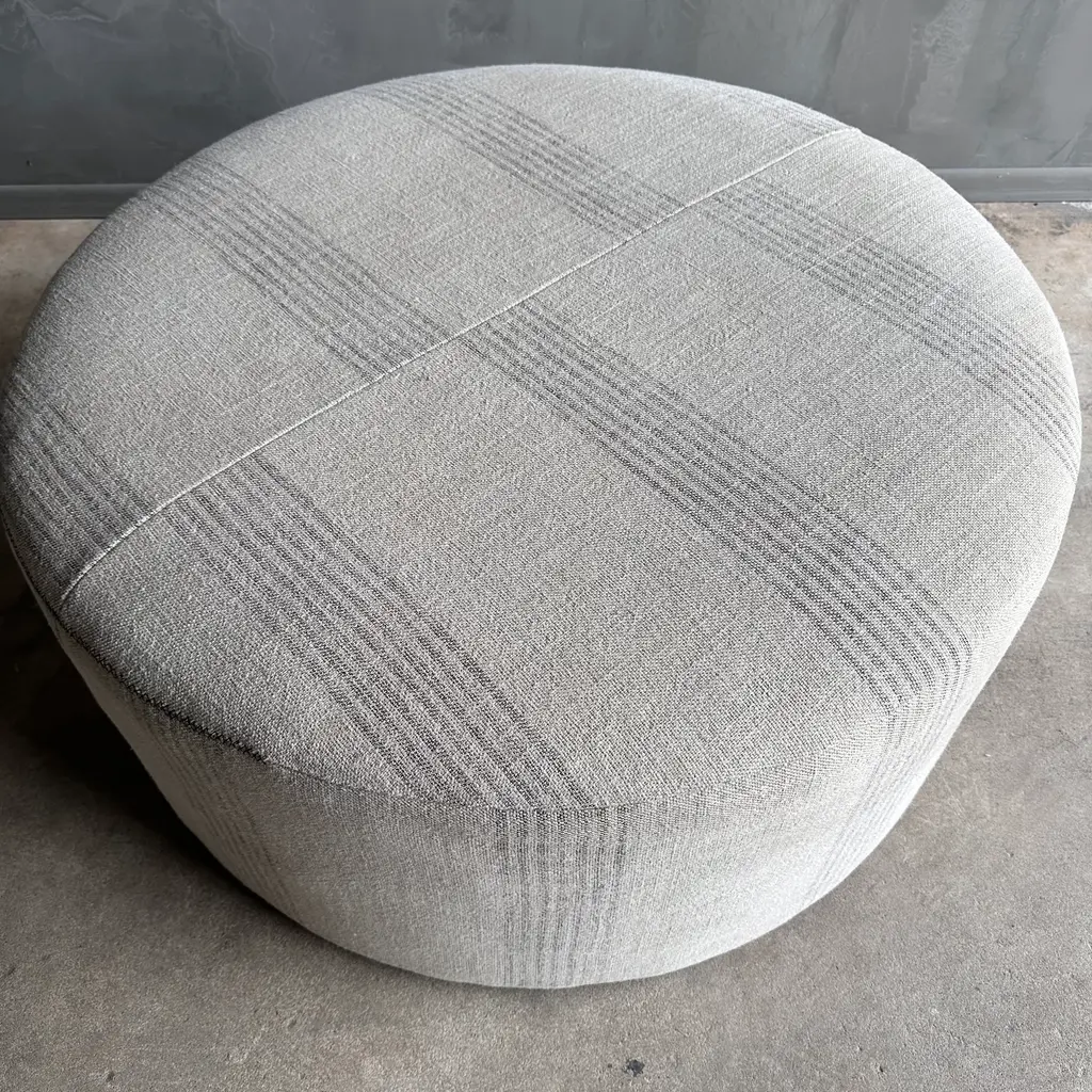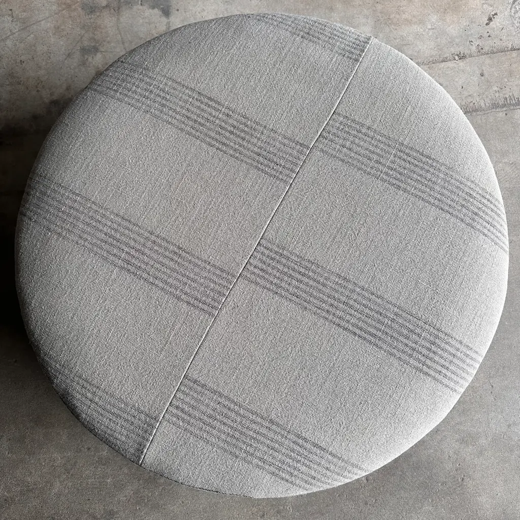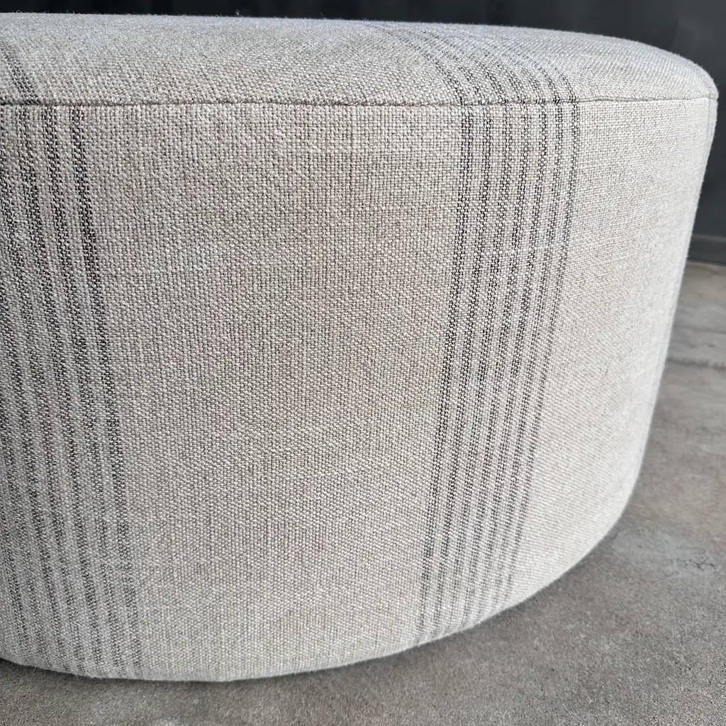 Round 36" Ottoman In Heavy Linen Stripe