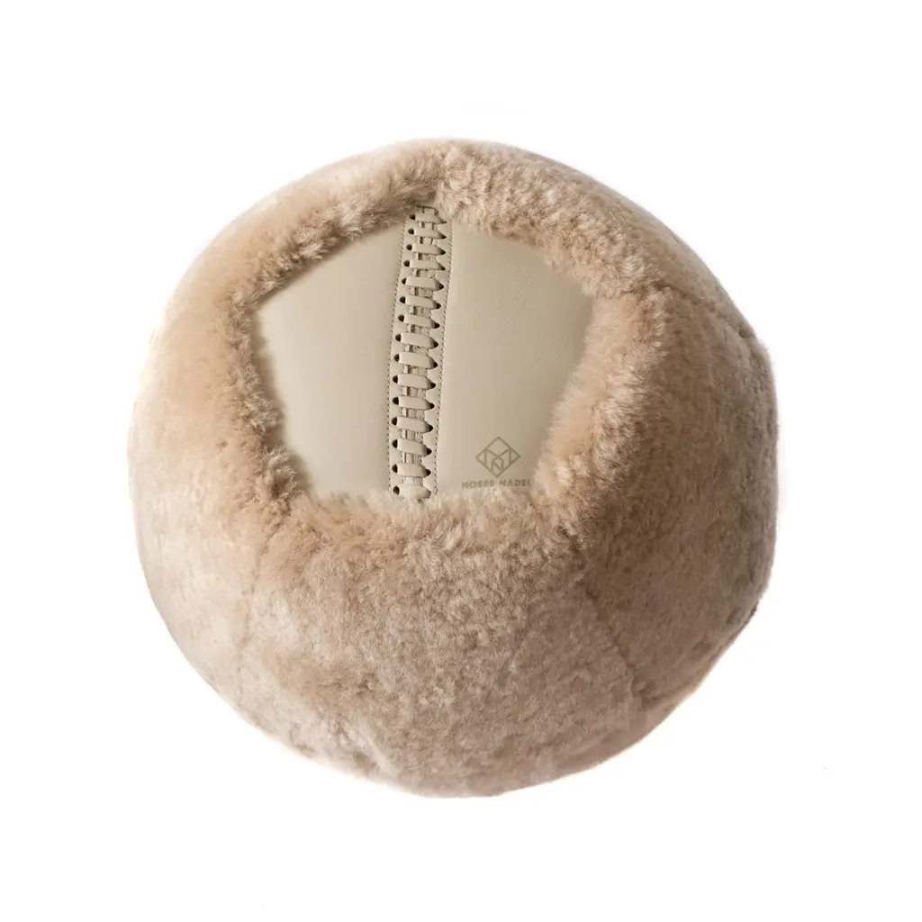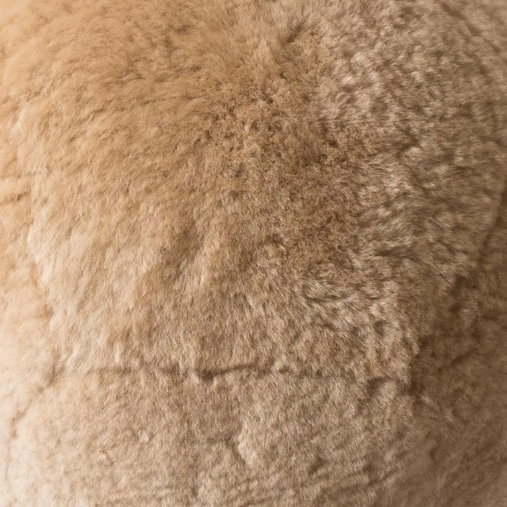 Round Ottoman In Camel Shearling Wool By Moses Nadel