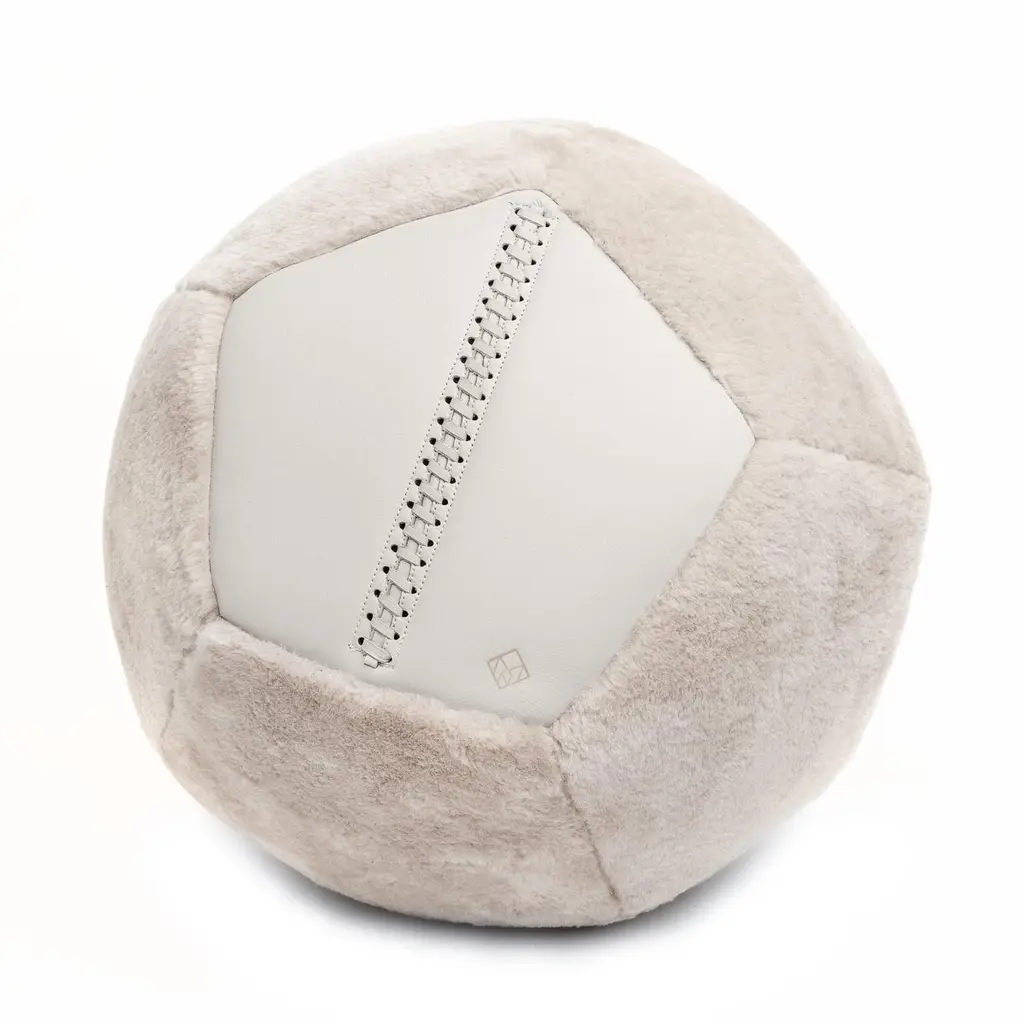 Functionality combined with elegance, the Ottoman X is a versatile piece of sculptural furniture. Cozy and inviting plush wool shearling has a textural hand and a soft feel. Its round shape is functional and playfully engaging. This shearling wool ottoman is commonly used to rest your feet and as alternative seating. Handcrafted and hand-filled with an elongated laced closure detail. Our products are made to order in Long Island, NY.Color: Dune ShearlingDimensions: 14"Ø. Because our products are handcrafted, dimensions may vary slightly. Materials: Shearling, Leather, Foam. This product is made of natural materials.Style no: IOT1502-18-PS149Production time: 6-8 weeks. Rush fee is an additional 25%.Item shown in editorial setting is Ottoman X Queen in Camel color shearling