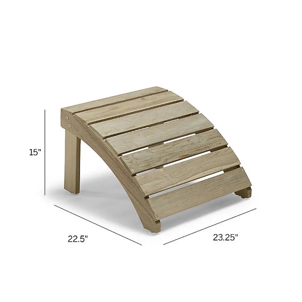 This companion to the iconic Adirondack chair is given a weathered finish that makes it perfect for beachside bungalows or lake house retreats. Its high-quality teak frame and arched shape make it a comfortable place to kick up your feet and relax. Hand-built from sustainably harvested, high-quality teak that is naturally resistant to mildew, so it holds up to rain and humidity Durable teak frame is kiln dried to remove moisture, guarding against warping and cracking, and sanded by hand so it's smooth to the touch Over time, teak will develop a natural silver patina if left untreated Frame is backed by an industry-leading 10-year structural warranty Stainless steel hardware Chair sold separately Assembly required A Frontgate exclusive. At Frontgate, our primary focus is quality. We guarantee that every product we sell will stand up to the supreme test – our customers' satisfaction. To learn more about our policies, visit our Shipping & Processing, Returns & Exchanges and Warranty & Price Guarantee pages.
