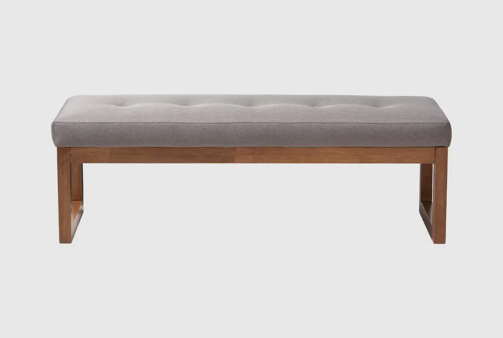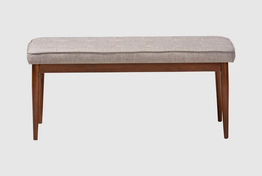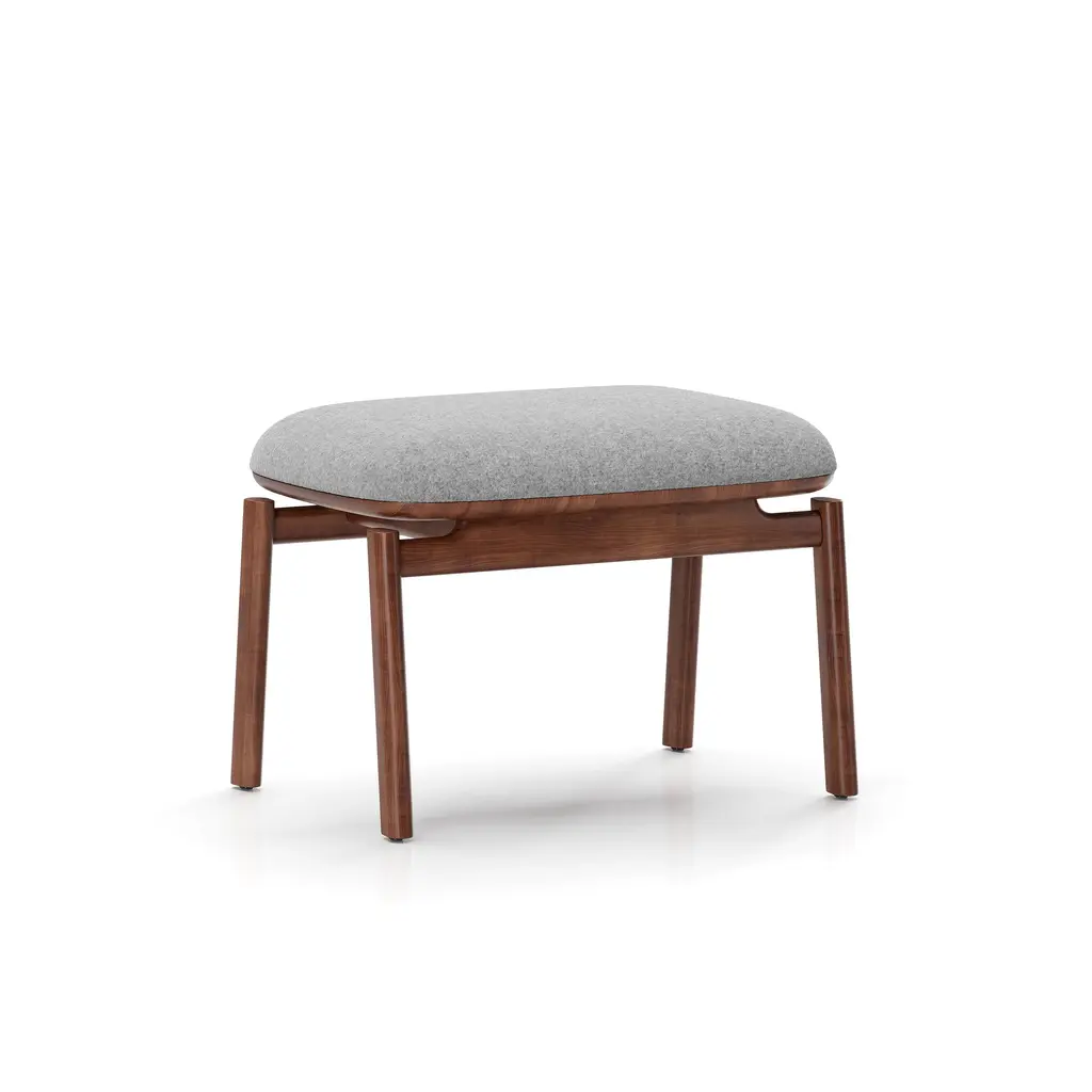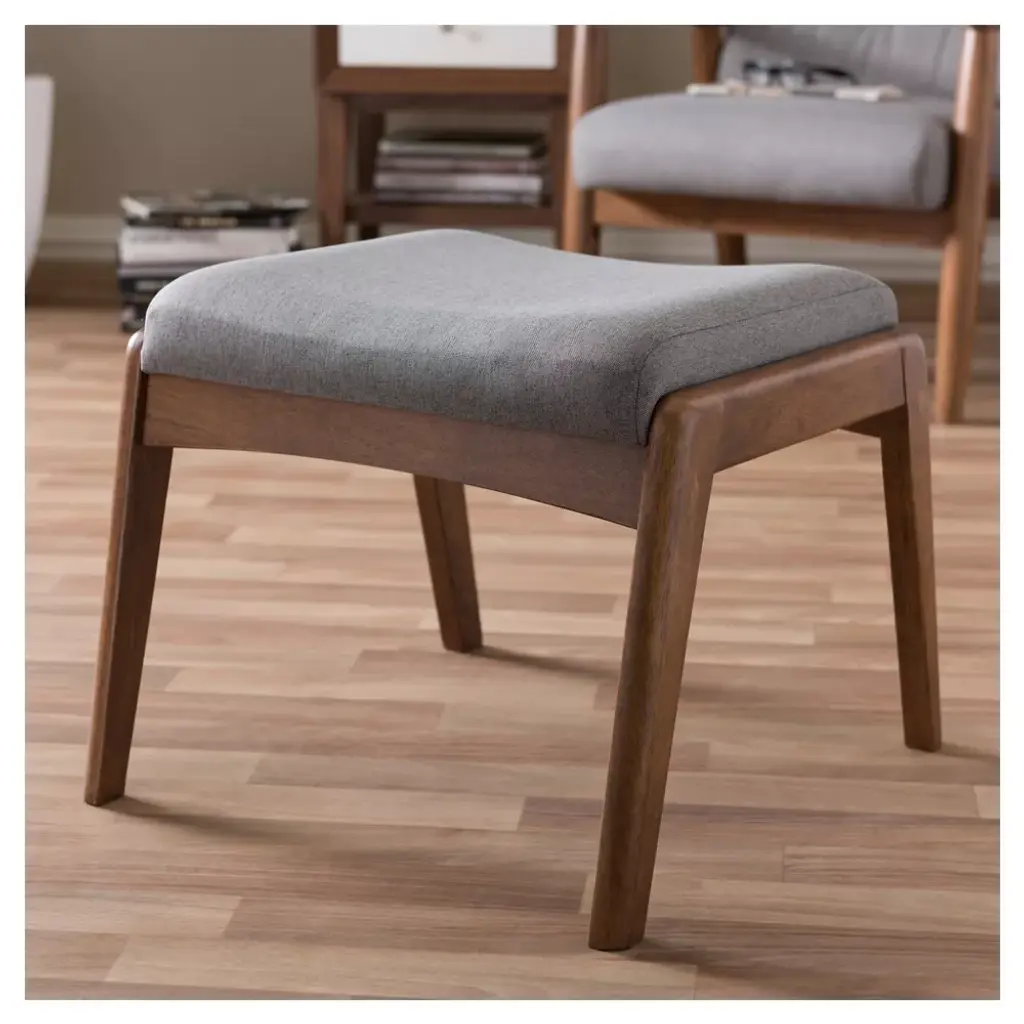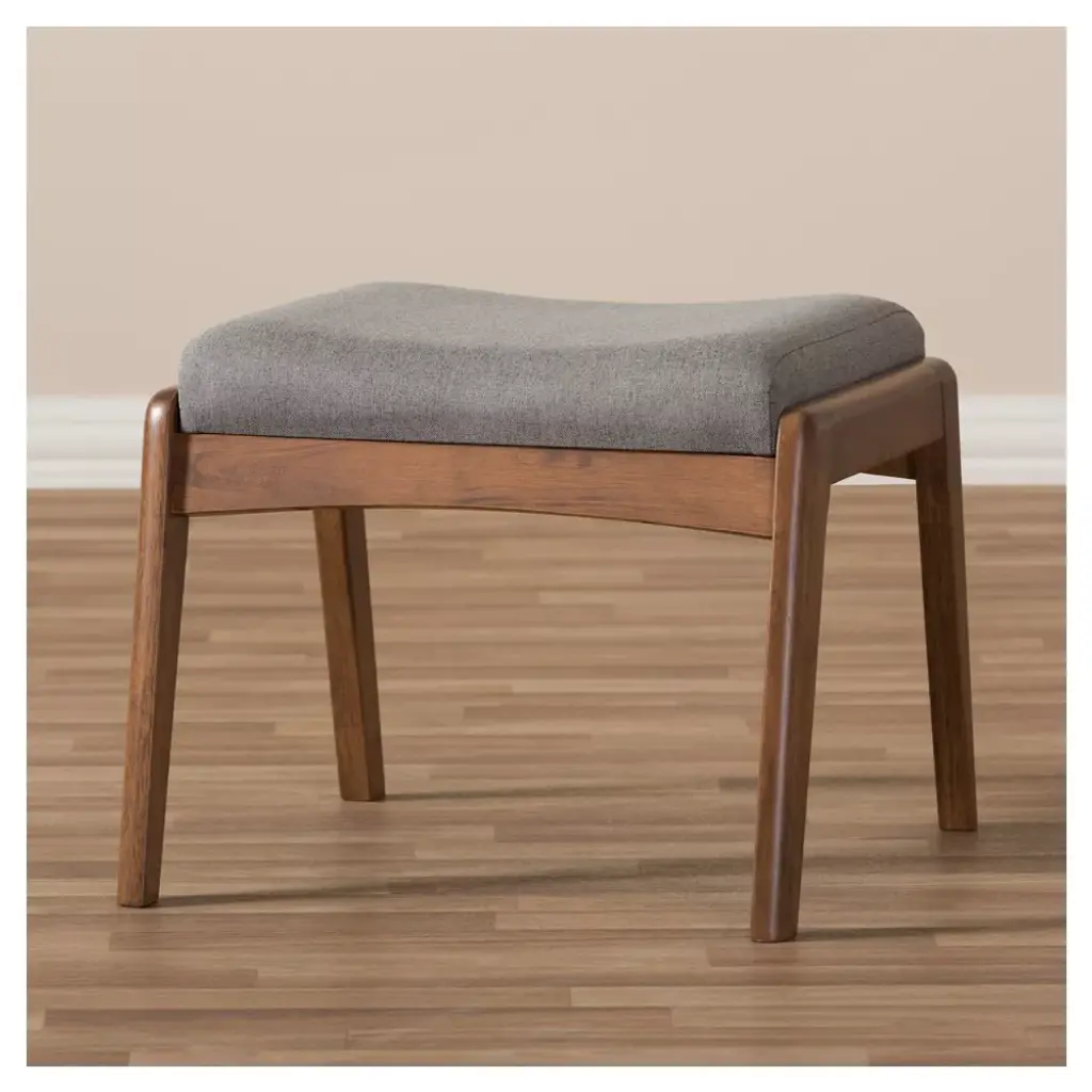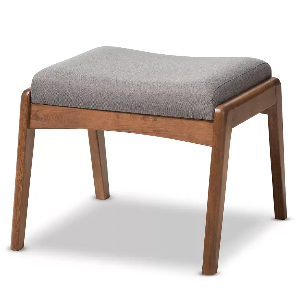 Roxy Mid - Century Modern Wood Finish And Fabric Upholstered Ottoman - Gray, "Walnut" Brown - Baxton Studio