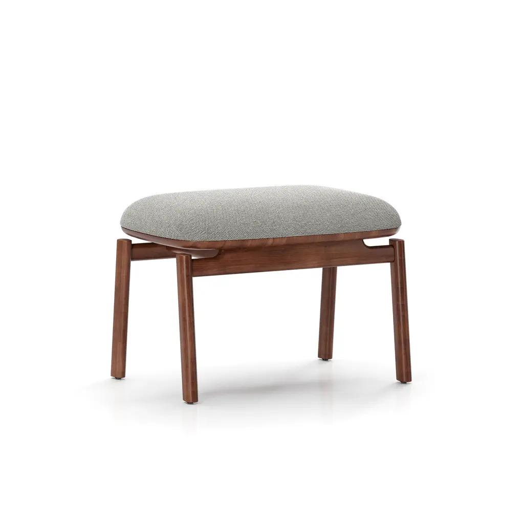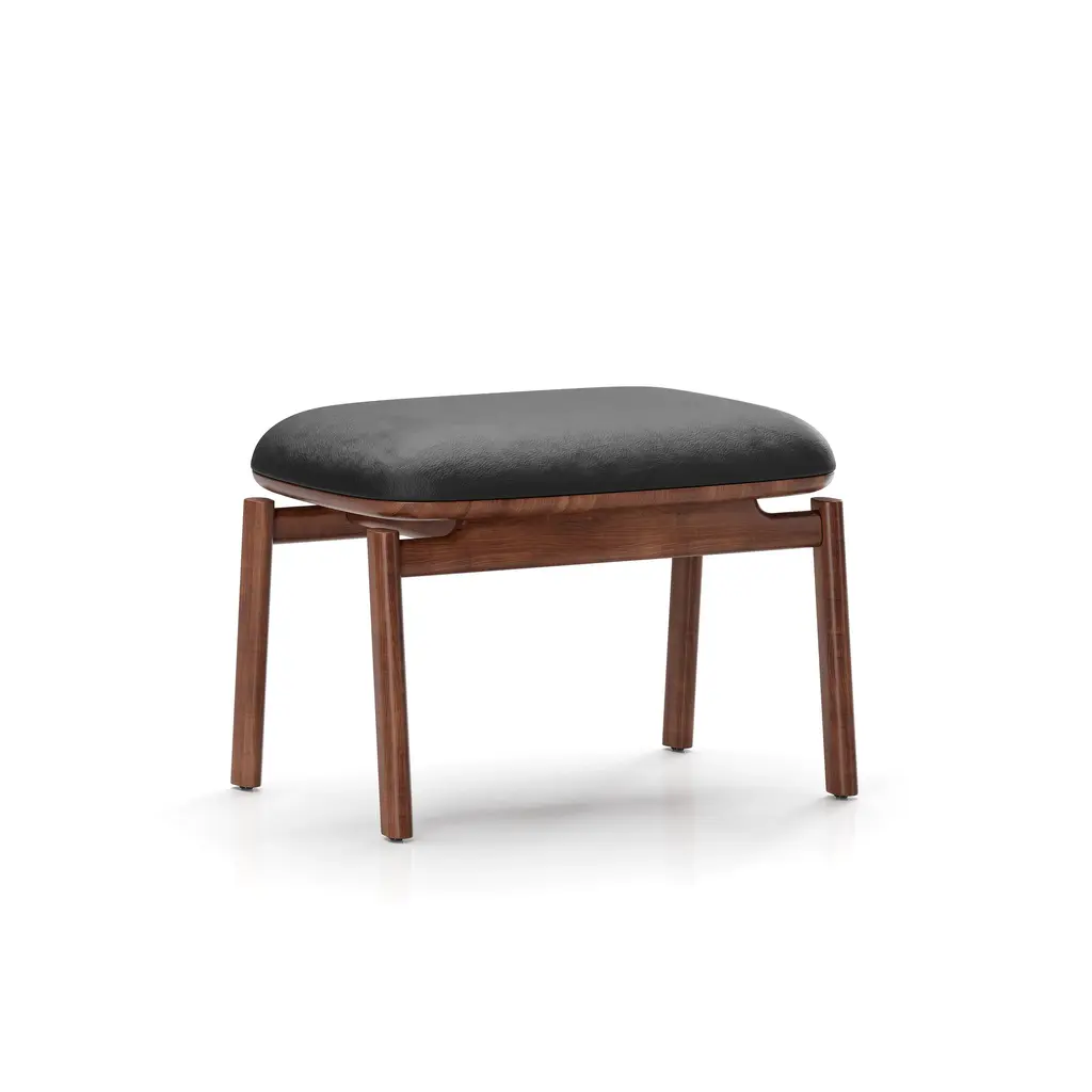 Inspired by the Danish designs, the Roxy upholstered footstool is the perfect accompaniment to the Roxy high-back lounge chair, providing additional comfort to the elegant piece. Crafted of solid rubberwood in dark walnut finishing with gray fabric upholstery, a sophisticated look of the ottoman is formed. Featuring a concaved design in the middle of the ottoman, the Roxy promotes ultimate relaxation. Durable and functional, the piece reflects the Danish design principles of simple form and practical structure. Made in Malaysia, the Roxy ottoman requires assembly.