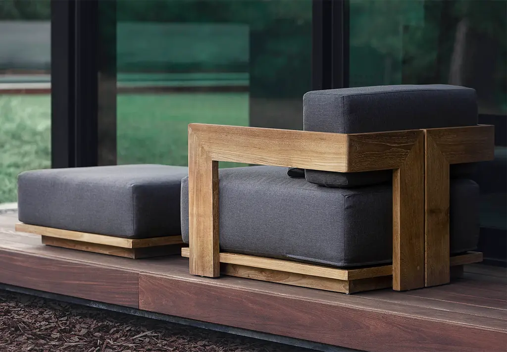 The S2 Outdoor Ottoman draws inspiration from modern architectural elements, featuring a sturdy solid teak wood base with a deep, luxurious cushion for ultimate comfort. Designed for both beauty and function, the S2 redefines outdoor living with a sophisticated presence that transforms any space into a refined retreat.