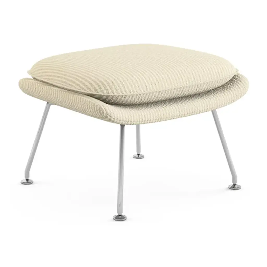Kick your feet up with the Saarinen Womb Ottoman by Knoll. The supplement to the legendary Saarinen Womb Chair, the Womb Ottoman has a modern aesthetic with its plush cushion and sleek 4-leg base. Its look is constructed of a molded plywood platform, stainless steel legs, a foam cushion, and nylon articulating glides. Choose to finish and upholstery that works best for your space.