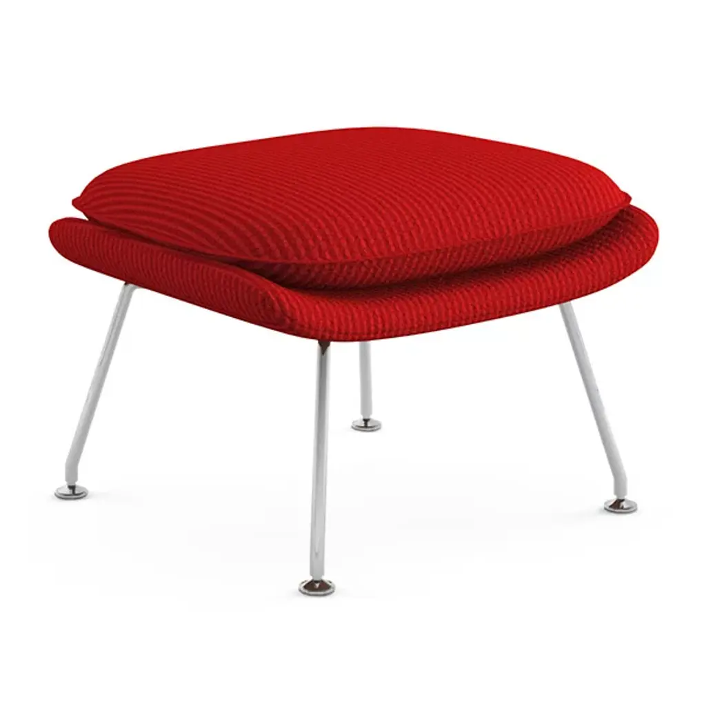 Kick your feet up with the Saarinen Womb Ottoman by Knoll. The supplement to the legendary Saarinen Womb Chair, the Womb Ottoman has a modern aesthetic with its plush cushion and sleek 4-leg base. Its look is constructed of a molded plywood platform, stainless steel legs, a foam cushion, and nylon articulating glides. Choose to finish and upholstery that works best for your space.