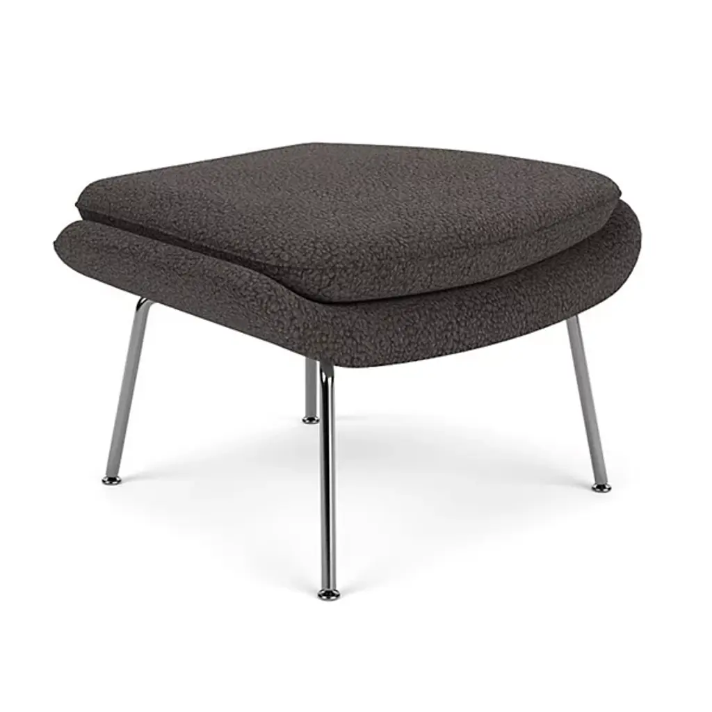 Kick your feet up with the Saarinen Womb Ottoman by Knoll. The supplement to the legendary Saarinen Womb Chair, the Womb Ottoman has a modern aesthetic with its plush cushion and sleek 4-leg base. Its look is constructed of a molded plywood platform, stainless steel legs, a foam cushion, and nylon articulating glides. Choose to finish and upholstery that works best for your space.