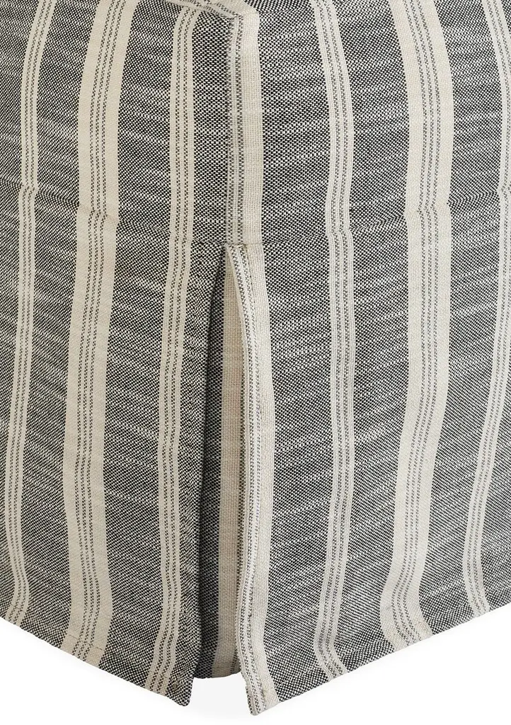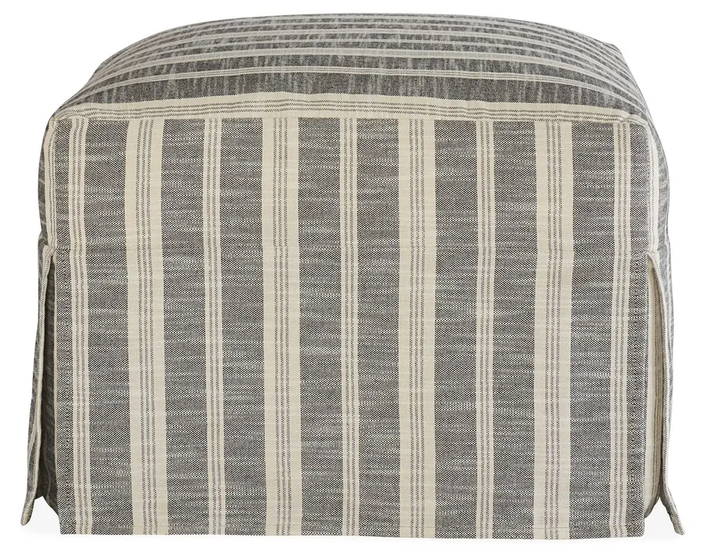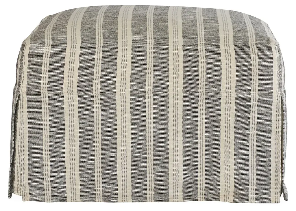 This handsome ottoman is crafted of kiln-dried hardwood with a non-swivel glider mechanism that rocks back and forth and ample padding for long-lasting comfort and support. We particularly love the casual, relaxed feel of the striped slipcover which is treated with a high-performance finish that repels stains and spills. Made in Virginia.
