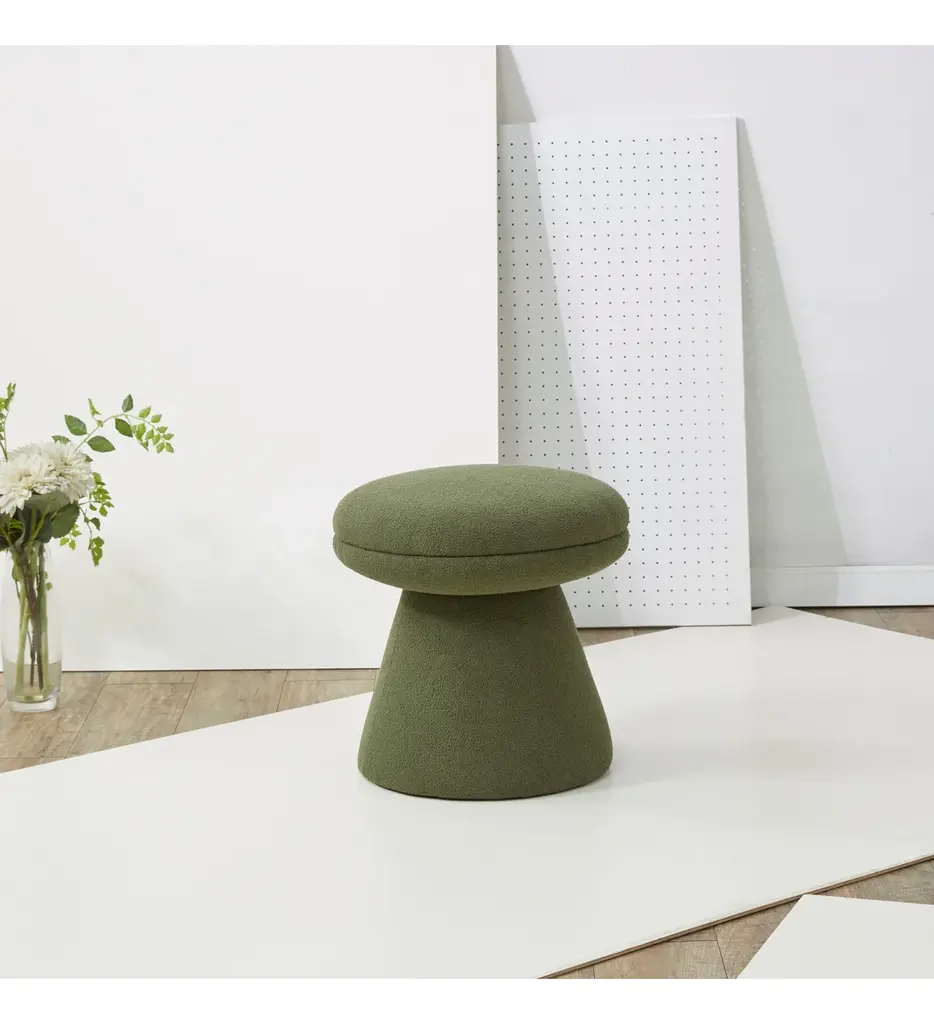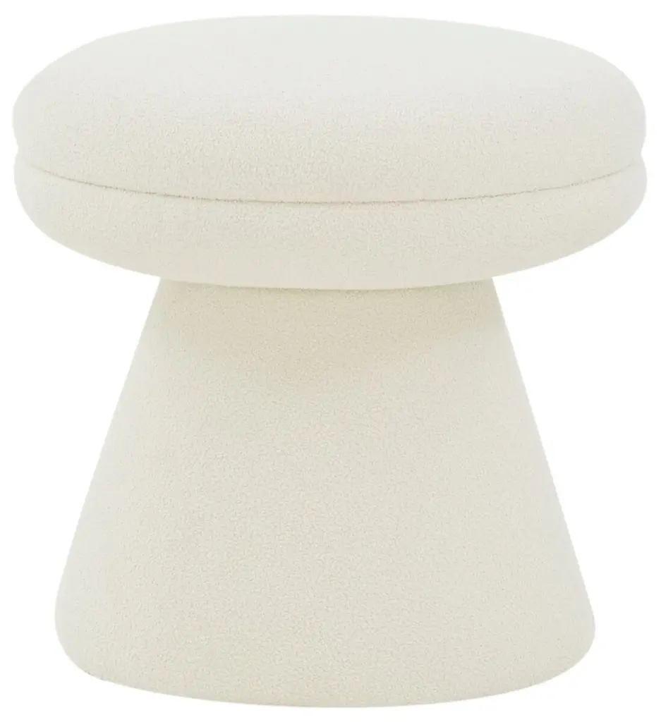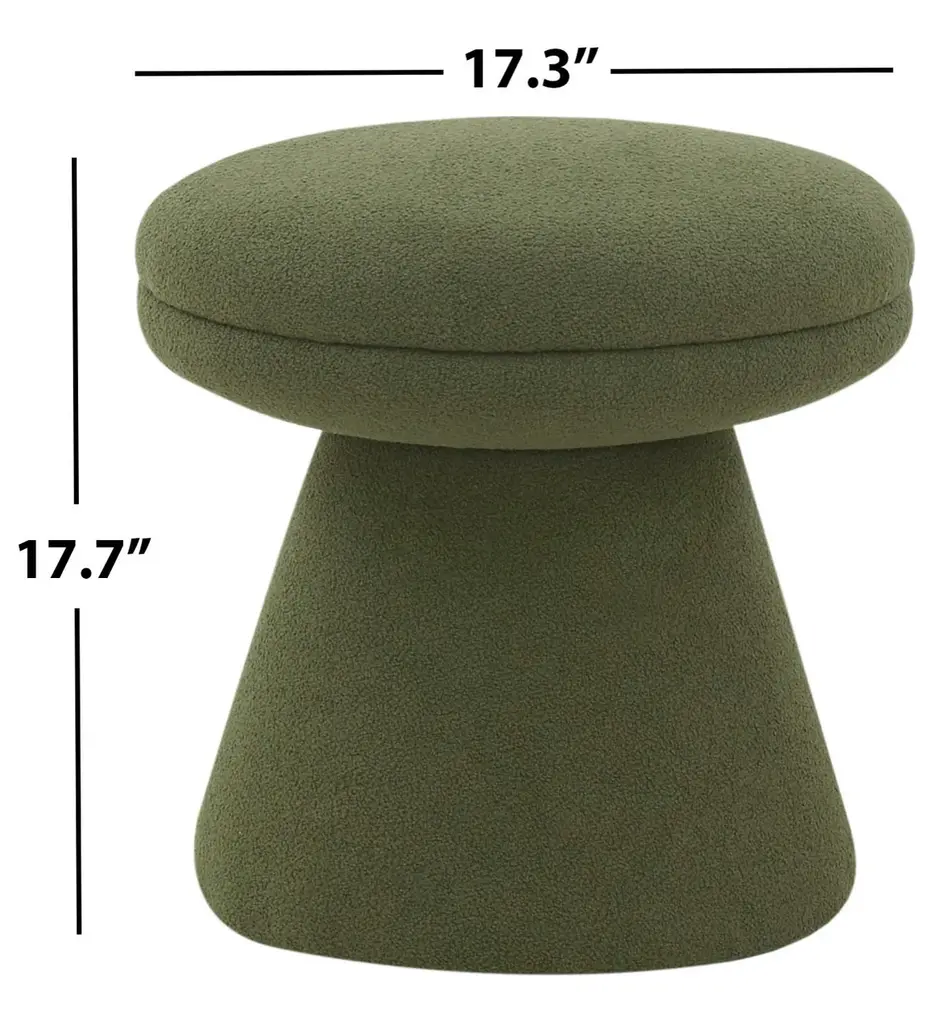 Give a chic and cozy upgrade to any corner with our Gisella ottoman. With a plush and sculptural silhouette, our ottoman brings elevated drama and comfort to any corner. A round seat and a beautifully flared base complete its eye-catching silhouette. Upholstered in the rich textures of olive-colored boucle, our ottoman offers a chic and versatile accent to cozy up your home. It can be styled in your living space or bedroom as a comfy footstool or paired in multiples to create a casual space for conversations.