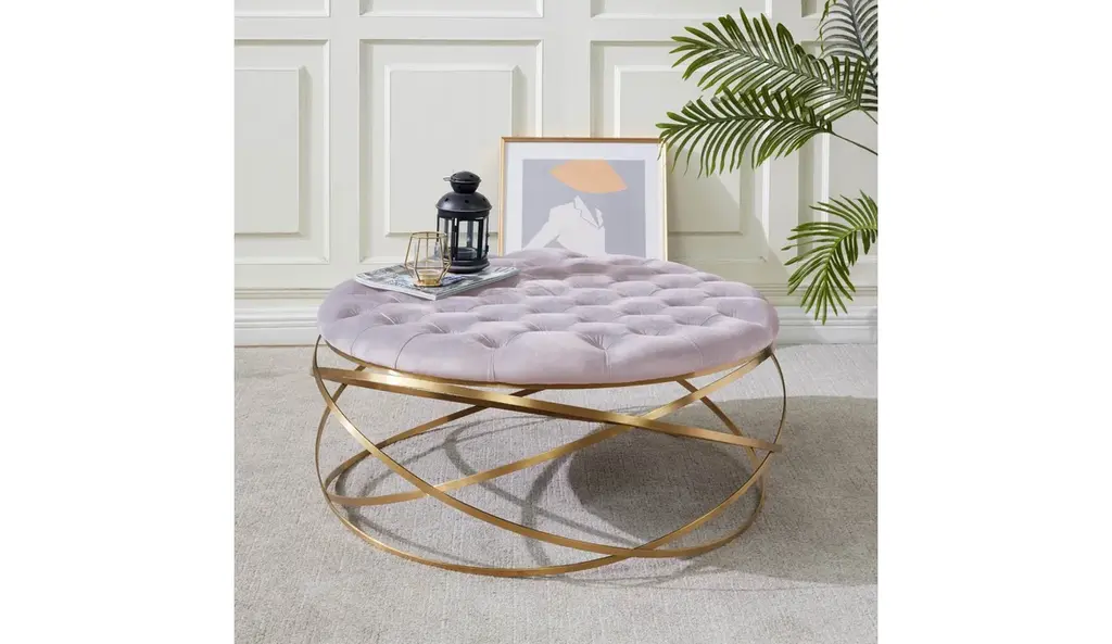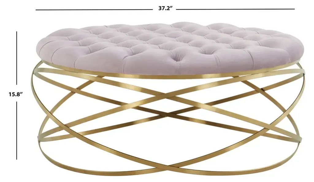Safavieh Couture Rumi Tufted Velvet Ottoman, Pale Taupe/gold