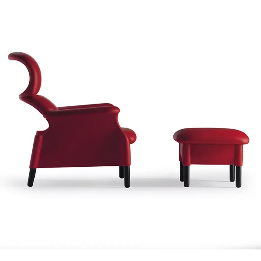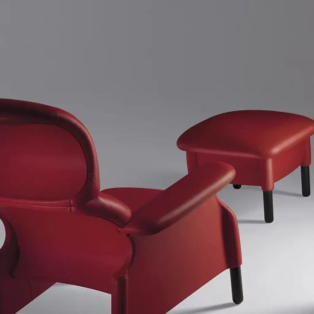The Sanluca Ottoman from Poltrona Frau adds a pleasant poof of retro-modern comfort to inside living areas. Designed by Achille Castiglioni, it pairs well with the striking design and clever curves of the Sanluca Armchair or a similarly appointed leather-sheathed seat, picking up where the 1960s design left off. Four rounded legs of solid beech wood support the structure, elevating a comfortably-upholstered top that overlaps the body below, with the padding and a lower structure both upholstered in a rich, signature Poltrona Frau leather that adds a luxurious touch to the design