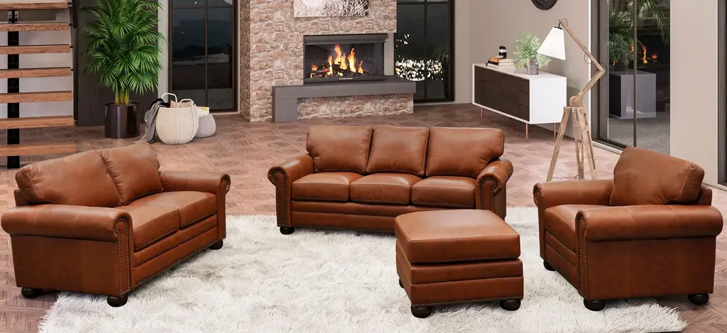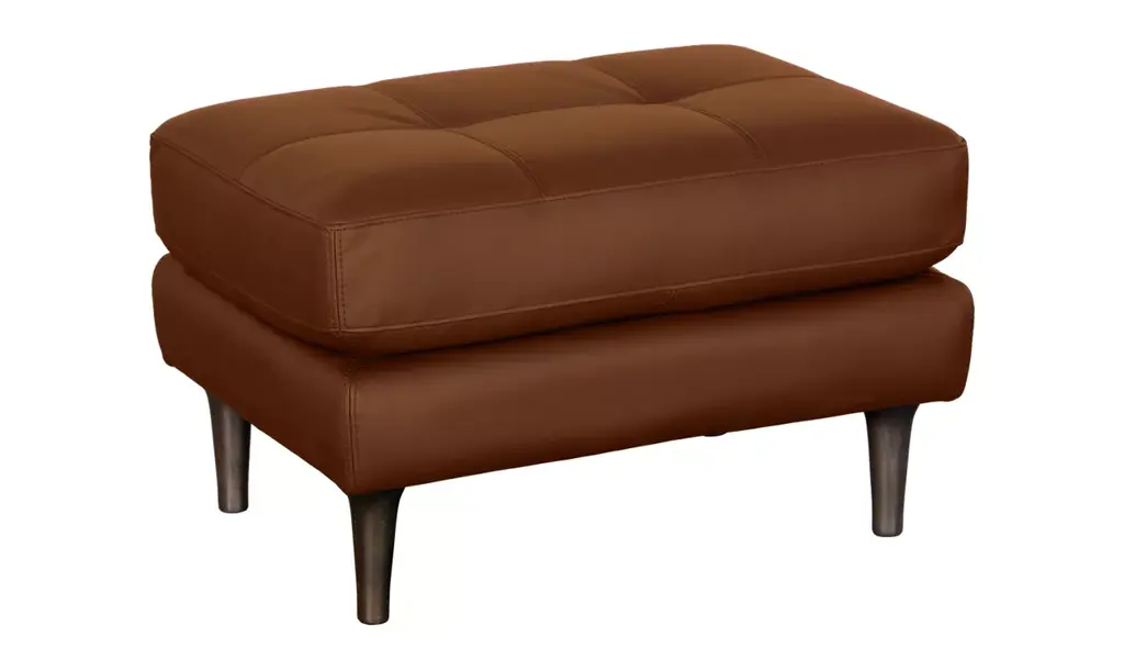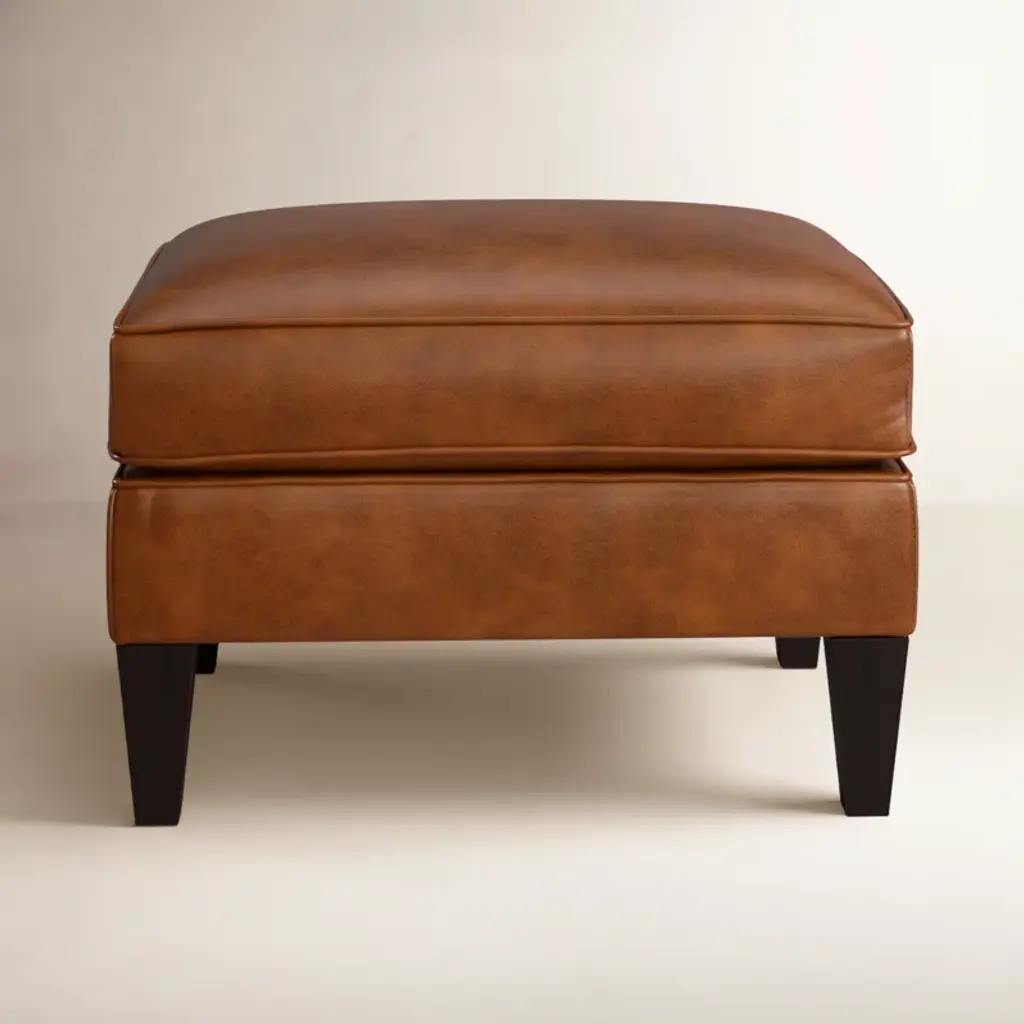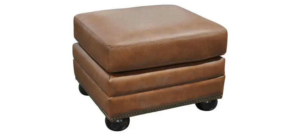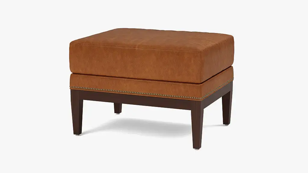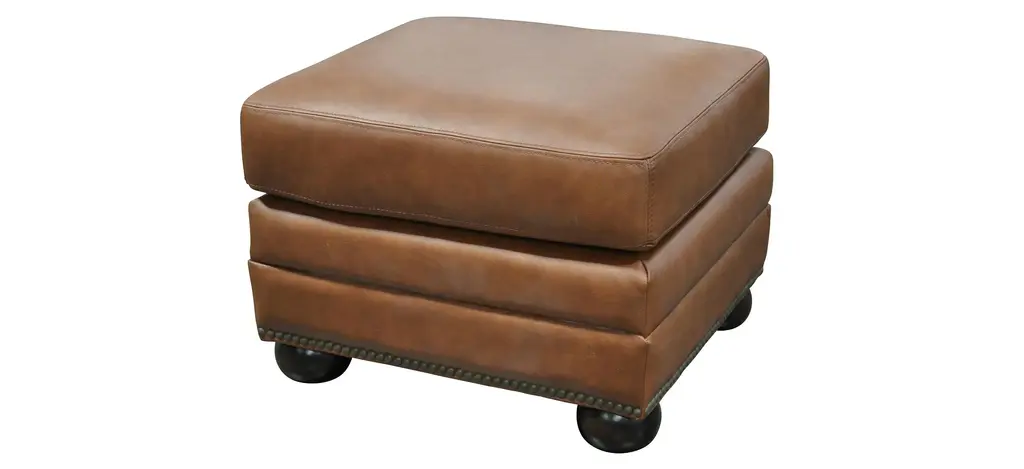 The Savannah Ottoman is proudly made in the USA from 100% top grain leather and is built to last with its Limited Lifetime Frame & Spring warranty. It begins with elegant, traditional styling featuring a rolled arm outlined in individually hand applied aged brass nail heads. It's then upholstered in a soft and subtly two-toned Aniline Plus top grain leather which retains the natural beauty and feel of the leather hide while providing superior protection against everyday use. Double stitched seams offer the utmost in strength & durability, while fully padded side & back panels add structure and quality.