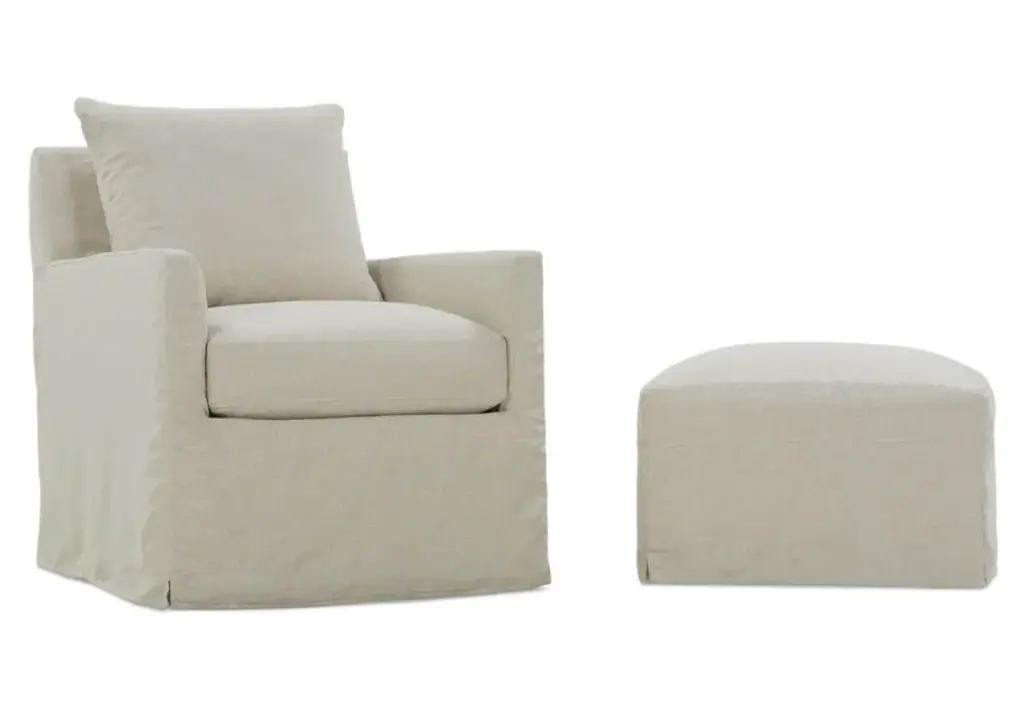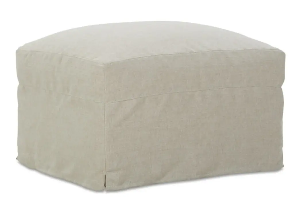 This ottoman lends simple sophistication with its clean lined form, plush cushion, and neutral upholstery. Pair with the matching chair or another chair or sofa for an individual touch.