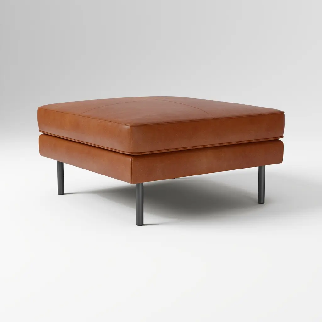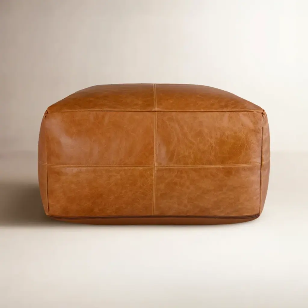 Generously sized and awe-inspiringly beautiful, this ottoman brings loads of rustic style and functionality to your living space as a footrest, table-esque surface or extra seating. Rich Italian tanned full-grain leather upholstery with exquisite stitching comes in smooth pure-aniline dyed leather for the cognac tan and chocolate brown color, emphasizing the hide’s natural markings, textures and scuffs, which patina nicely with age. High-density foam with polyester filling cushioning and a feather down blend surface topper make sitting and putting your feet up extra comfortable. Its solid wood frame is built to last, crafted with corner blocking for added reinforcement. The Sequoia Ottoman makes a grand addition to your well-appointed living room or den.