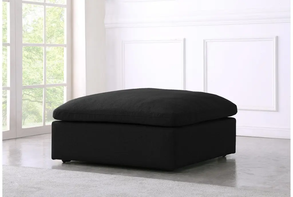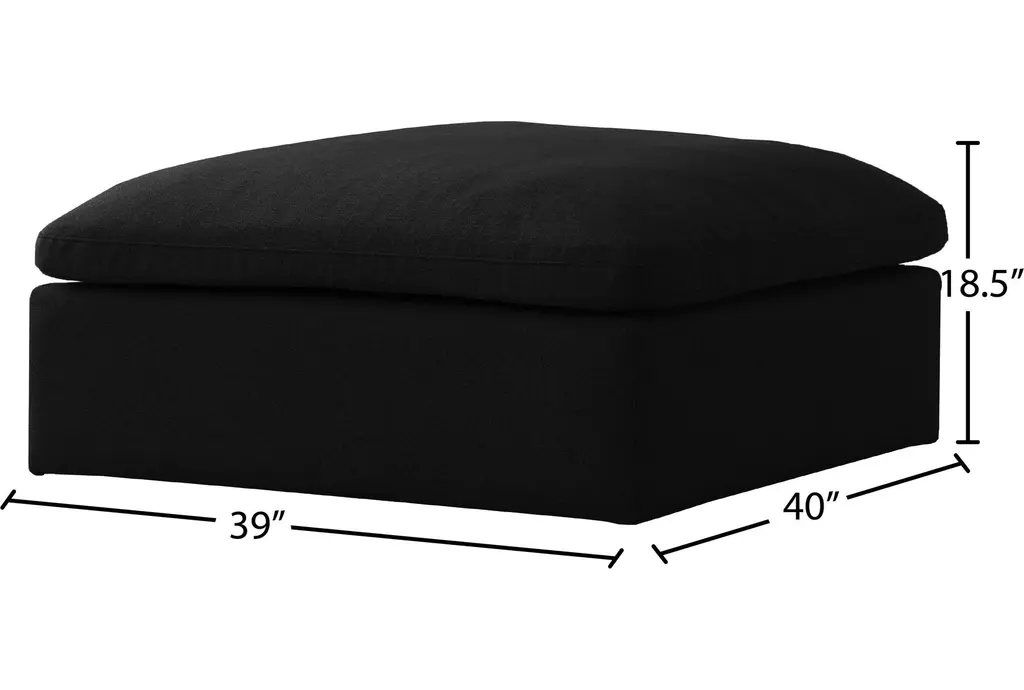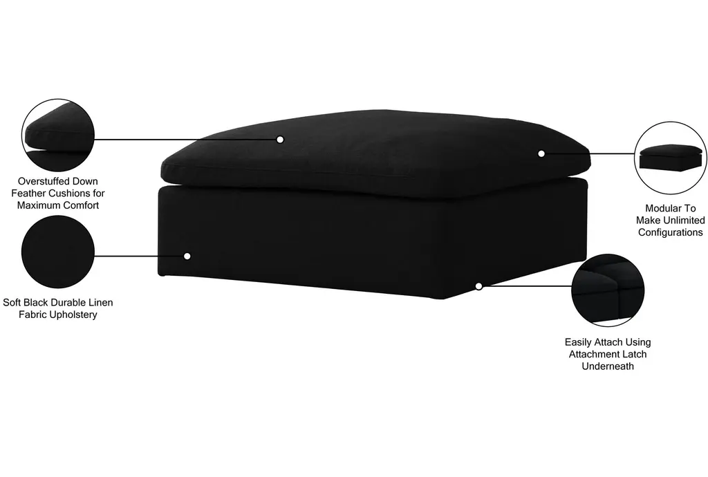 Serene Black Linen Textured Fabric Upholstered Deluxe Comfort Modular Ottoman | Rectangle