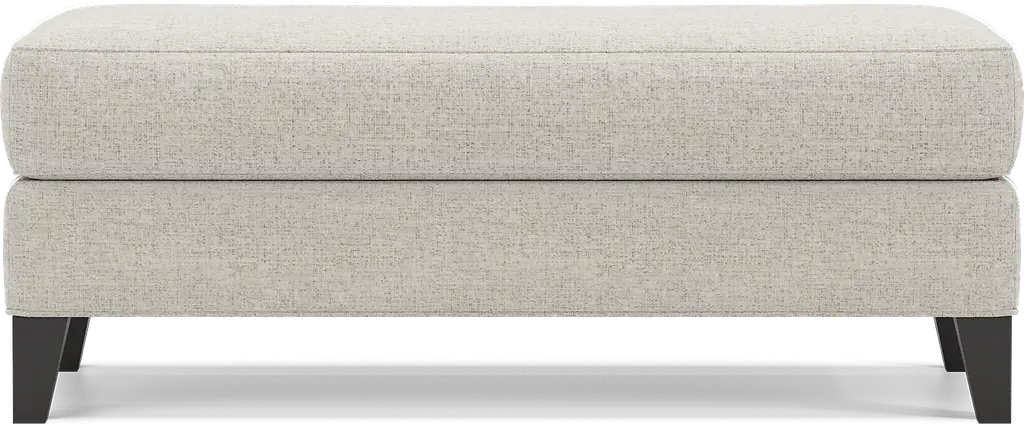 The classic charm and modern refinement of a Hamptons retreat come to life in the Shelton collection from Cindy Crawford Home, where plush textures, refined details, and effortless elegance offers an invitation to cosmopolitan coziness. Upholstered in a soft ivory chenille, this traditional ottoman features a cloud-like top cushion for indulgent relaxation, while its sleek rectangular shape and tall, tapered legs in a dark finish create a sophisticated silhouette. Upholstery: 100% polyester.