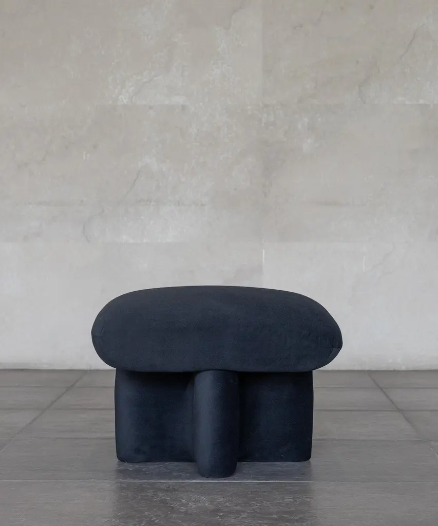Shorn Ottoman - Matte Black Velvet By Sho Modern