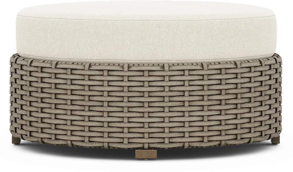 Siesta Key Driftwood Finish Round Outdoor Ottoman With Desert Cushion