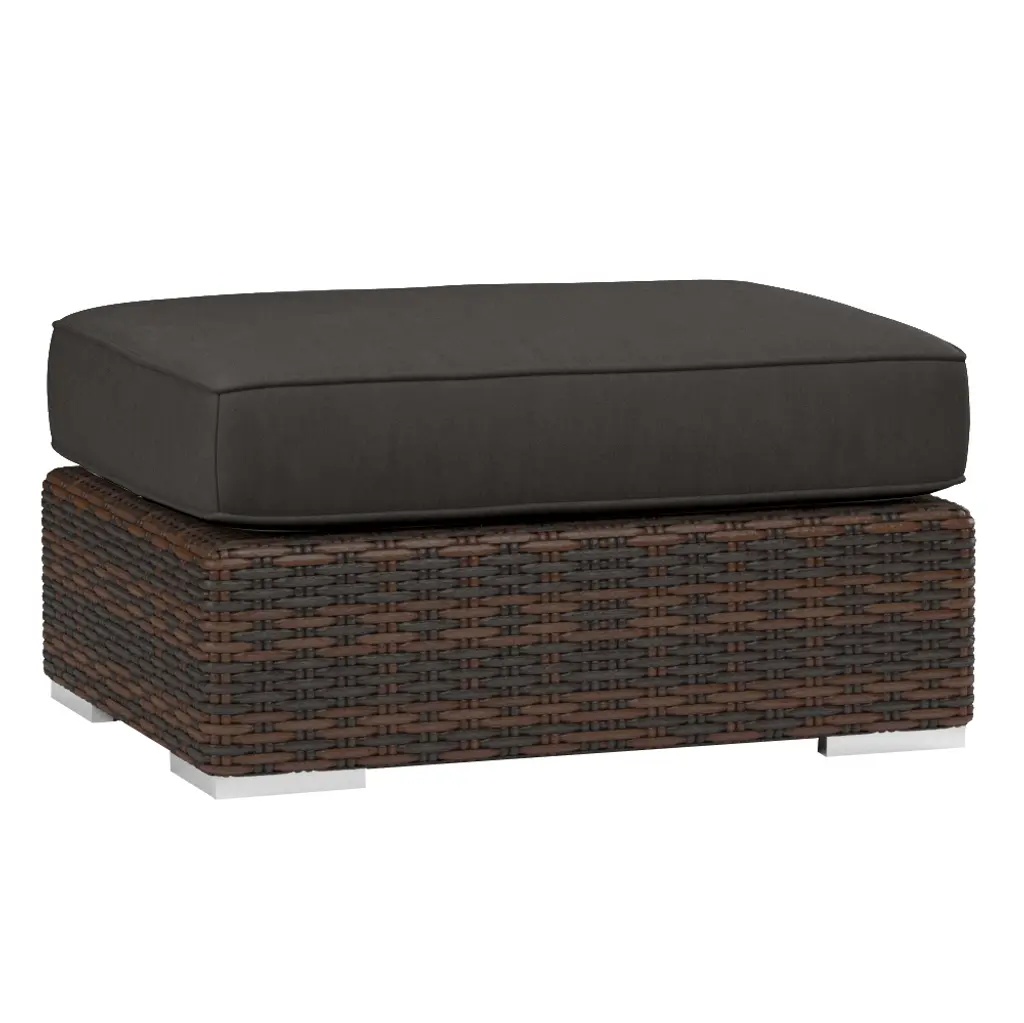 Make your patio even more comfortable with the Siesta Key ottoman. Ideal as an extra seat too, this accent is made with a durable rust-resistant powder coated aluminum frame and large weave all-weather wicker in a driftwood finish. This round ottoman is topped with a UV-resistant outdoor cushion in inky blue.