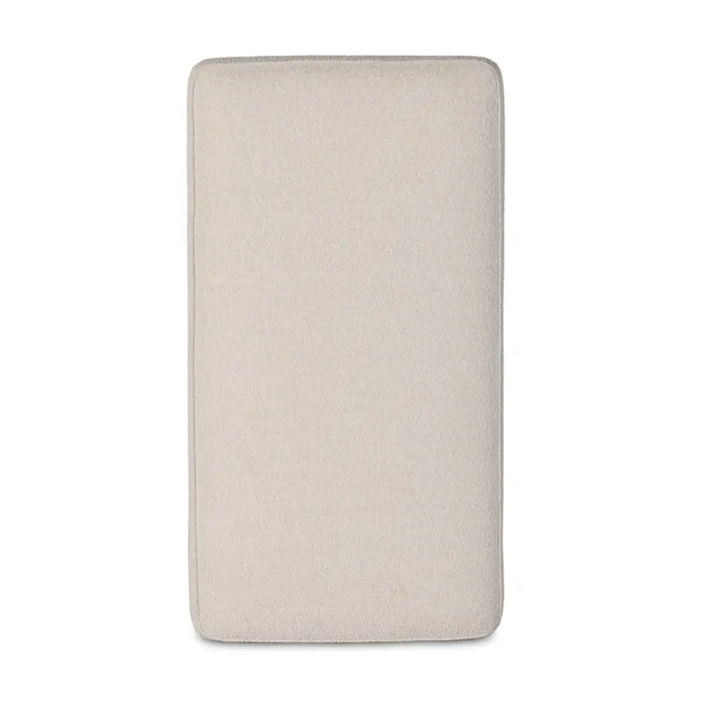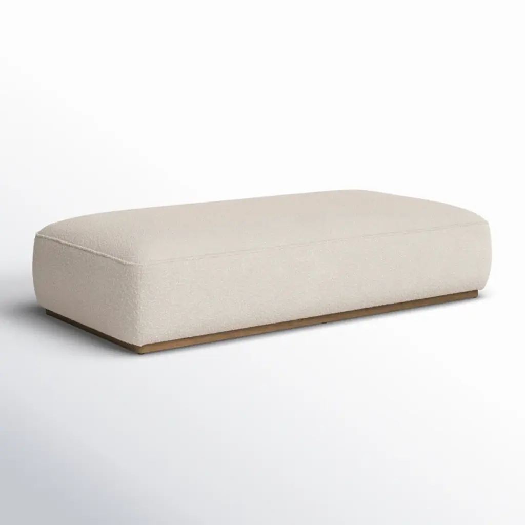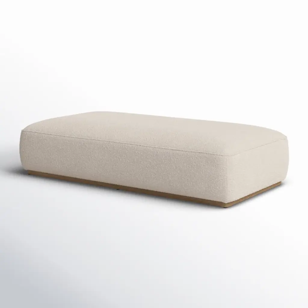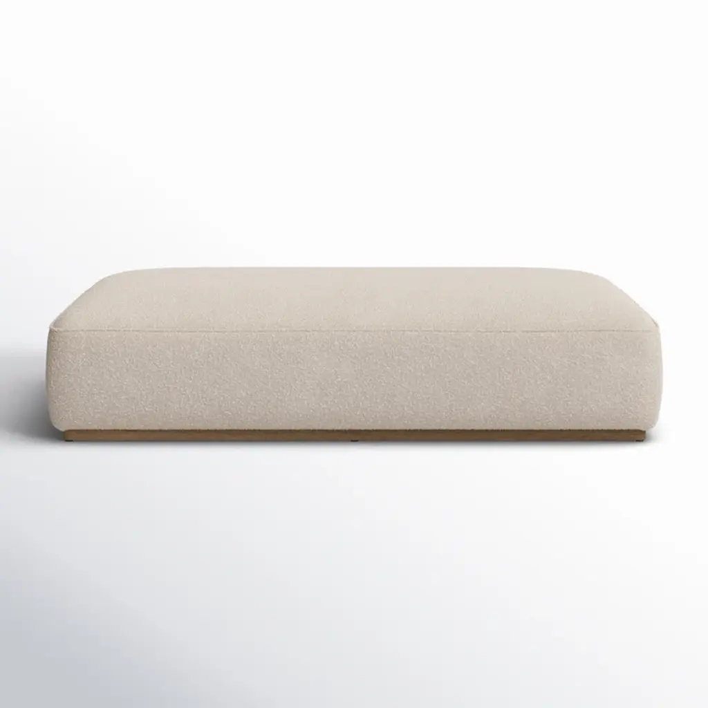 Upholstered in a chunky, textural boucle performance fabric and paired with a subtly distressed para wood base, this large, rectangular ottoman can be placed just about anywhere – bringing with it a retro vibe. Style with a tray as a design-forward coffee table. Performance fabrics are specially created to withstand spills, stains, high traffic, and wear, ensuring long-term comfort and unmatched durability.