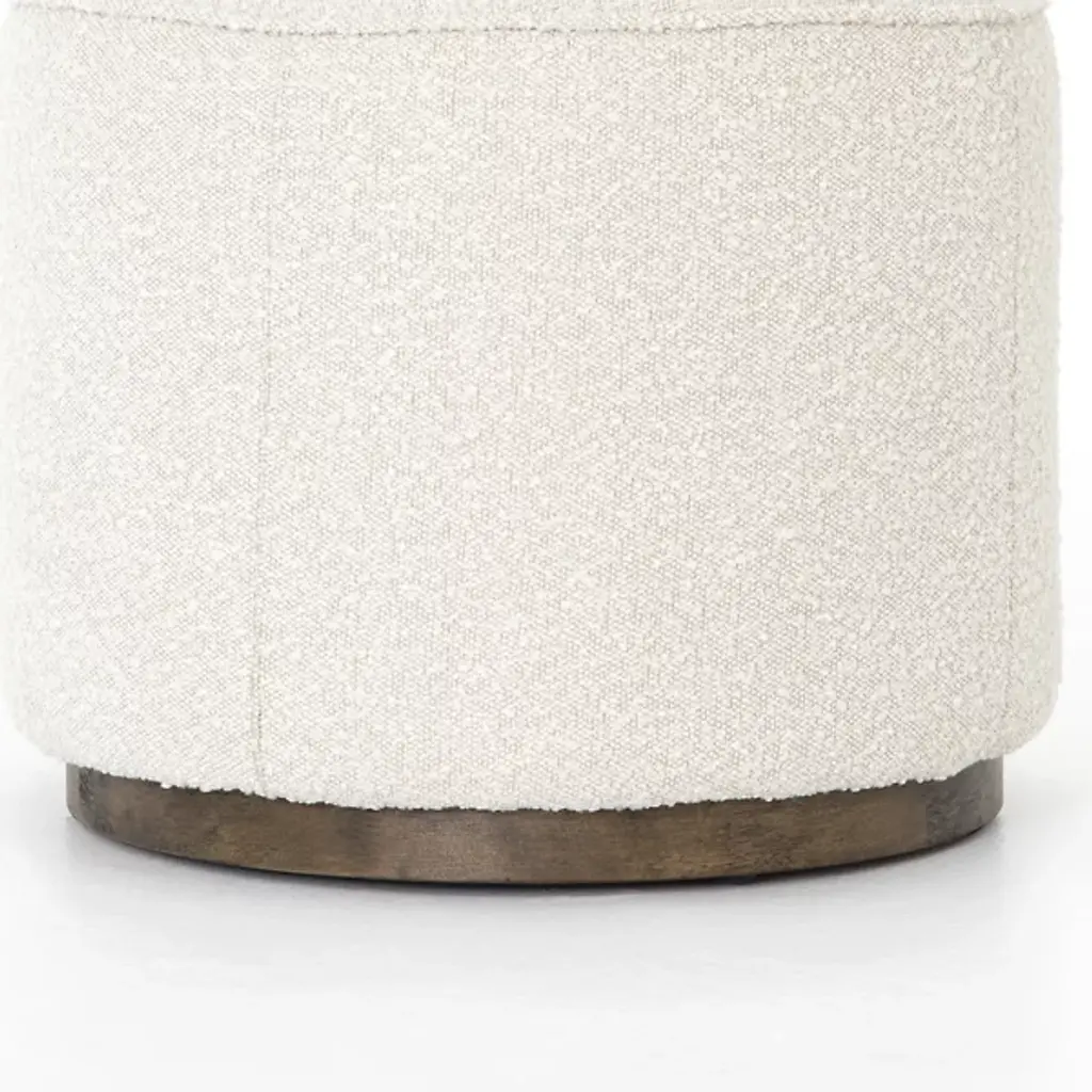 The Sinclair Round Ottoman from Four Hands fuses style and comfort. Crafted from solid parawood for durability, this ottoman is upholstered with fine fabric, providing a touch of luxury for your space. Filled with a plush combination of 95% polyester and 5% acrylic, it is an inviting seating option. The round shape adds a convenient and versatile element to your interior setting. Simple yet sophisticated, Sinclair completes the look of your home.