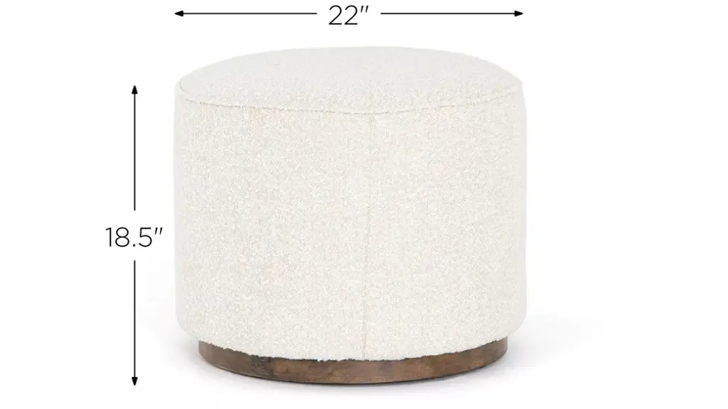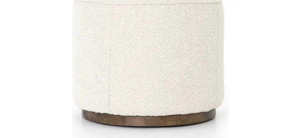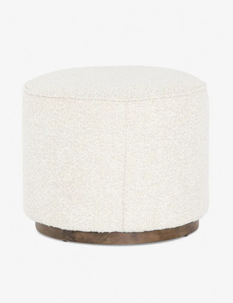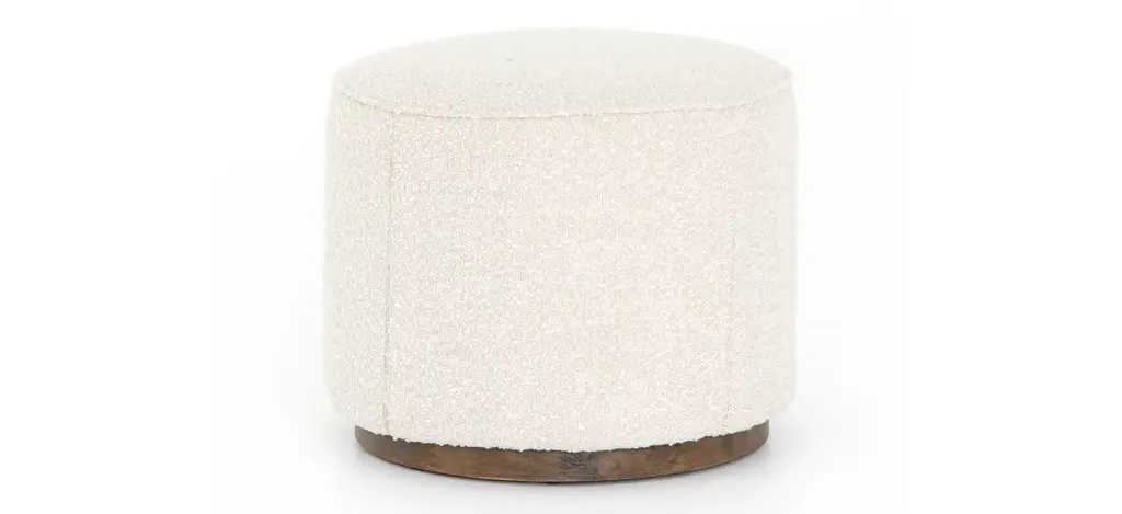 The Sinclair round ottoman of textural cream boucle can be placed just about anywhere, bringing with it a hip retro vibe.