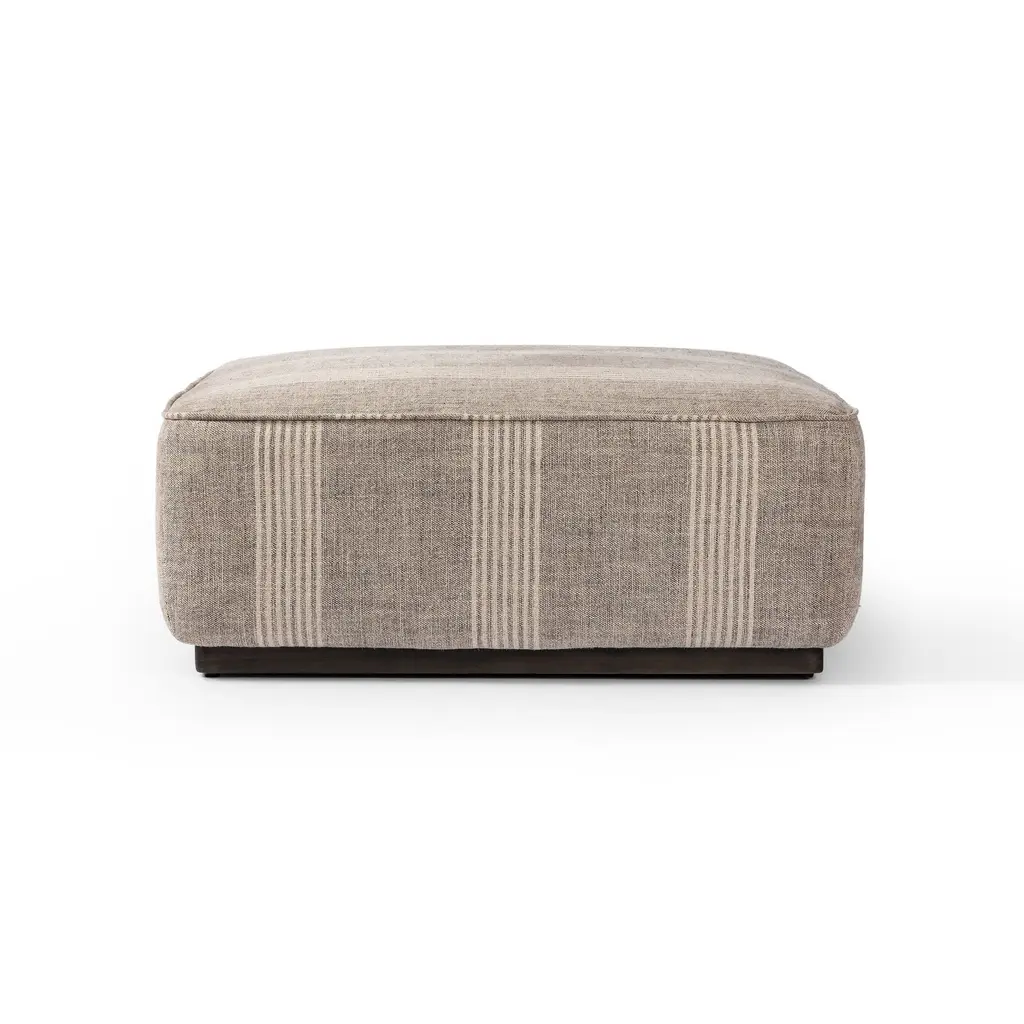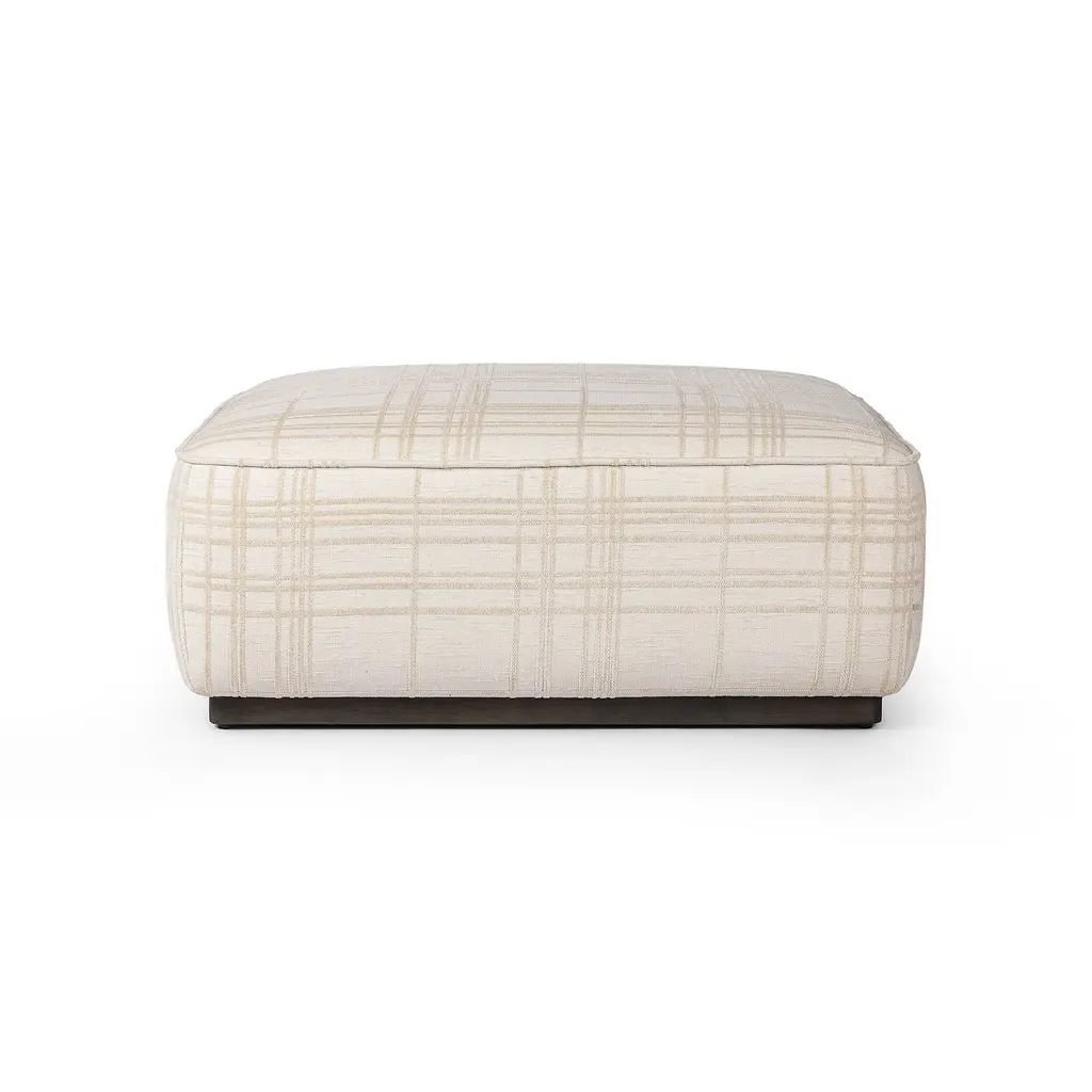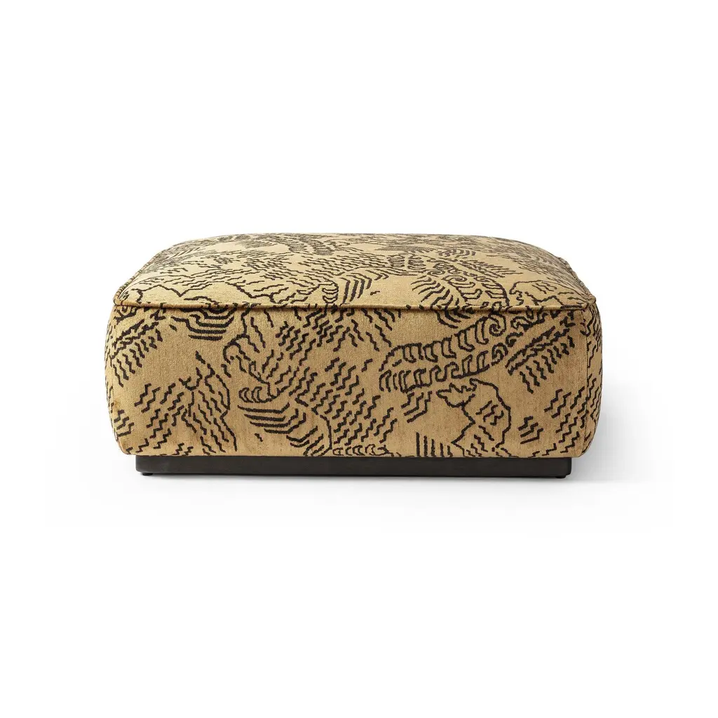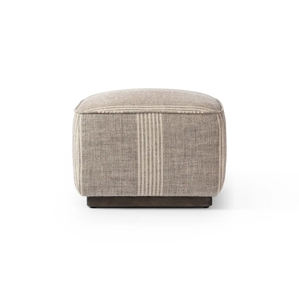 Elevate your favorite living or lounge space with the Sinclair Square Ottoman from Four Hands. Upholstered in a stunning, one-of-a-kind fabric, this ottoman adds a touch of global influence to any room, while its solid wood base adds a touch of warmth and durability. Versatile and eye-catching, this ottoman is a must-have for any tasteful home. Highlights