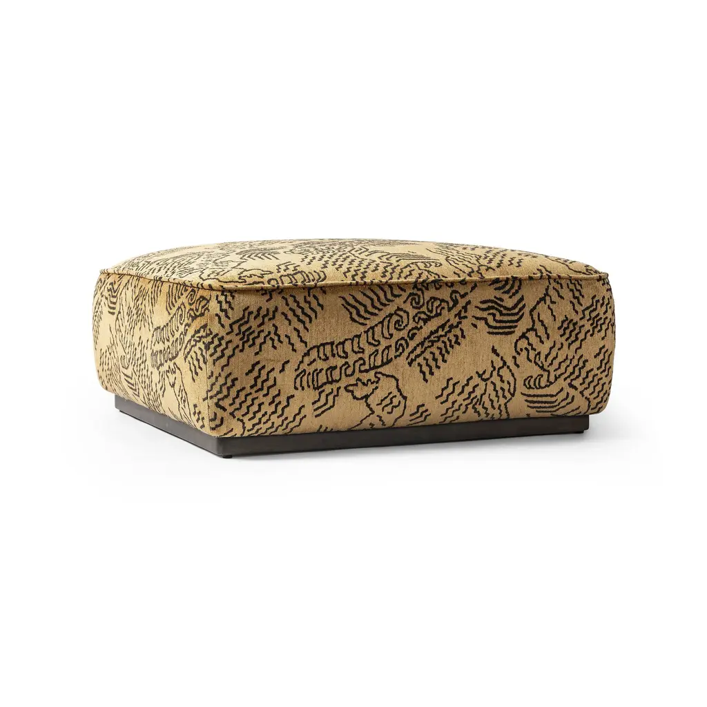 Elevate your favorite living or lounge space with the Sinclair Square Ottoman from Four Hands. Upholstered in a stunning, one-of-a-kind fabric, this ottoman adds a touch of global influence to any room, while its solid wood base adds a touch of warmth and durability. Versatile and eye-catching, this ottoman is a must-have for any tasteful home. Highlights