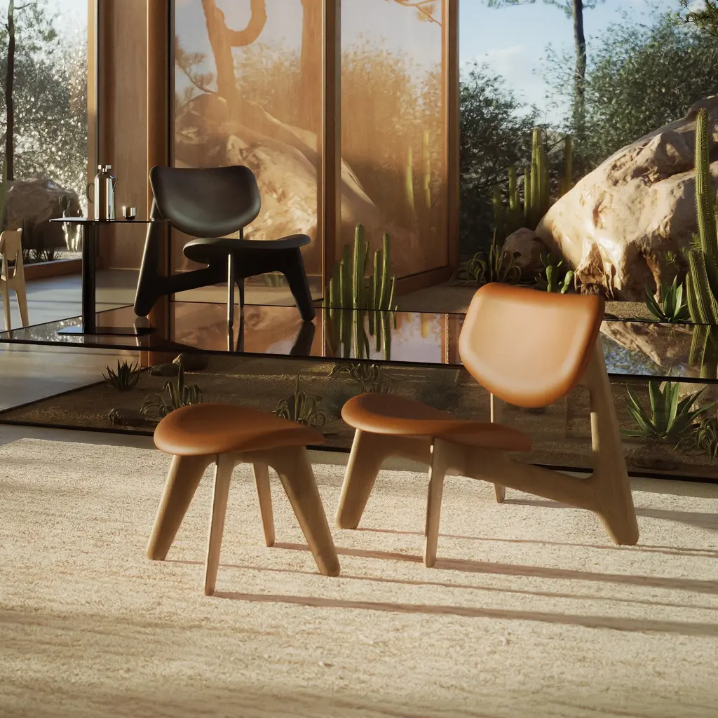 Crafted to showcase the natural beauty of wood and leather, the Slab Ottoman features a solid oak in 2 finishes with a deeply brushed surface that highlights the grain. The oval seat pad is upholstered in durable vegetable-tanned leather, chosen for its rich texture. With its refined construction, this ottoman is suited for a range of spaces.