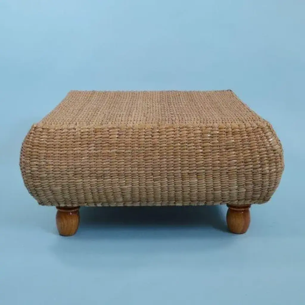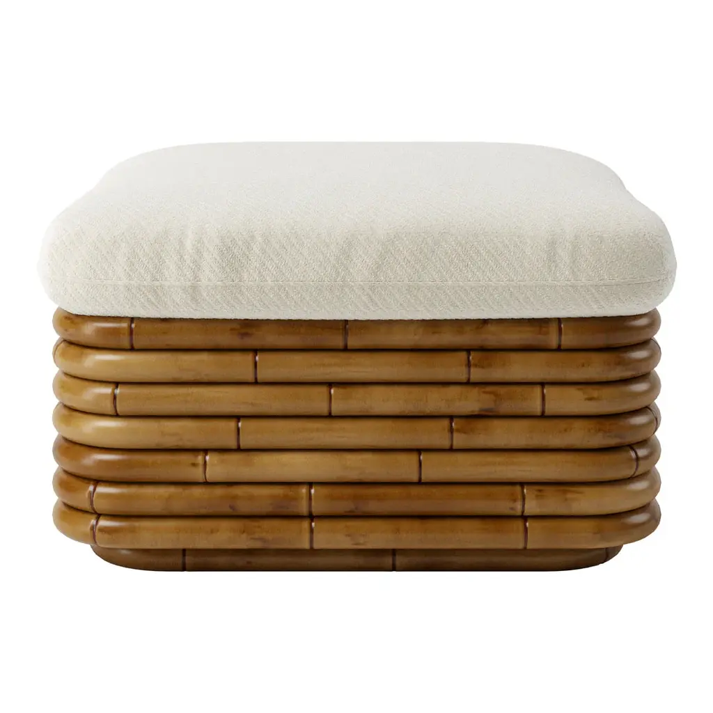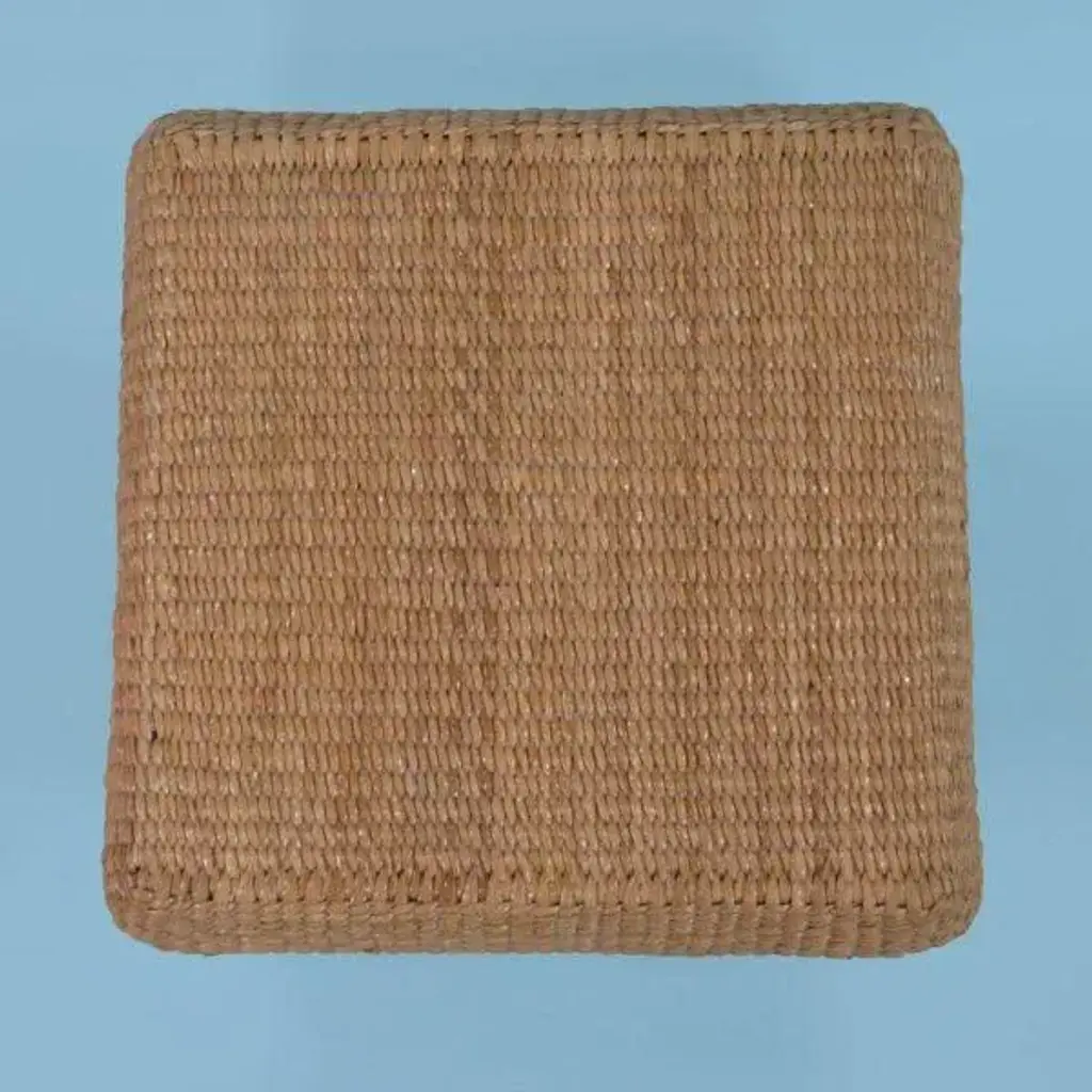 Mario Lopez Torres Woven Rattan Ottoman. There are minor imperfections to the hand-made woven rattan. Signed Mario Lopez Torres Est. 1974. On wooden bun feet. (see photos)