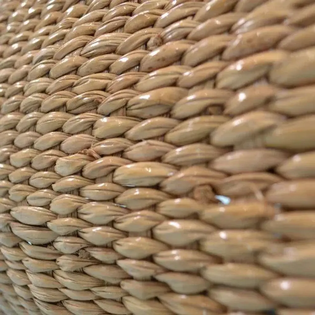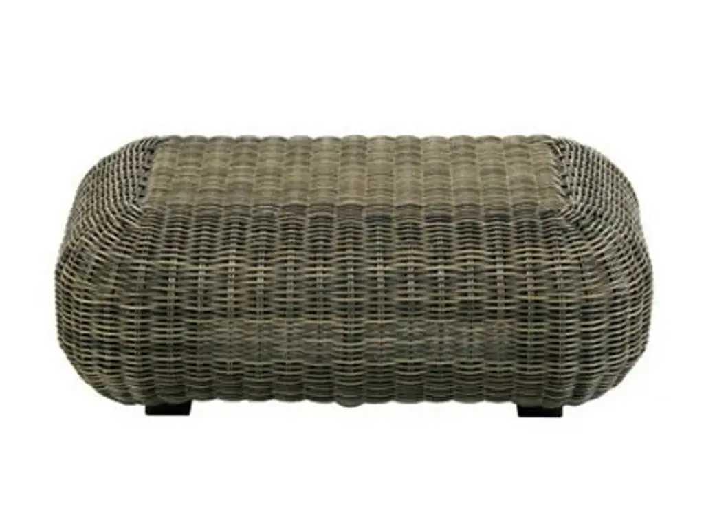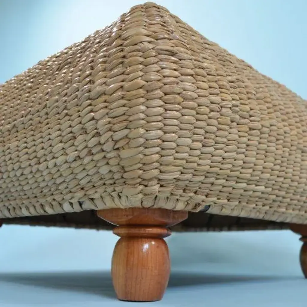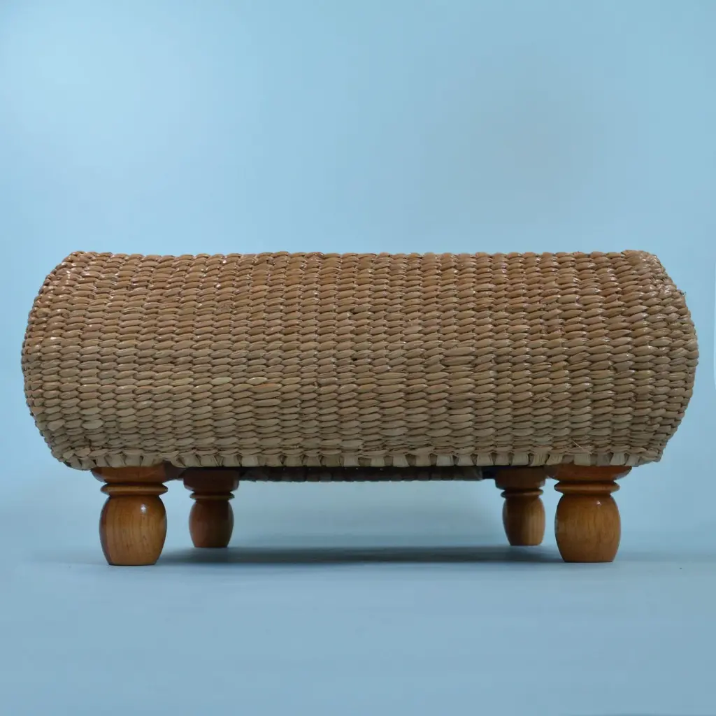 Mario Lopez Torres Woven Rattan Ottoman. There are minor imperfections to the hand-made woven rattan. Signed Mario Lopez Torres Est. 1974. On wooden bun feet. (see photos)
