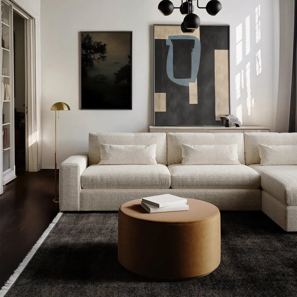 The 36" Sophie Ottoman brings the same refined design in a more generous scale, making it a versatile centerpiece for any room. With its larger size, it easily doubles as a coffee table ottoman or extra seating for guests. Its clean, rounded silhouette adds softness and structure to a space, while its made-to-order flexibility allows for full customization—choose from a wide range of fabrics and either a wood or metal base. Functional, sculptural, and tailored to you, the Sophie Ottoman is a timeless addition to modern living.