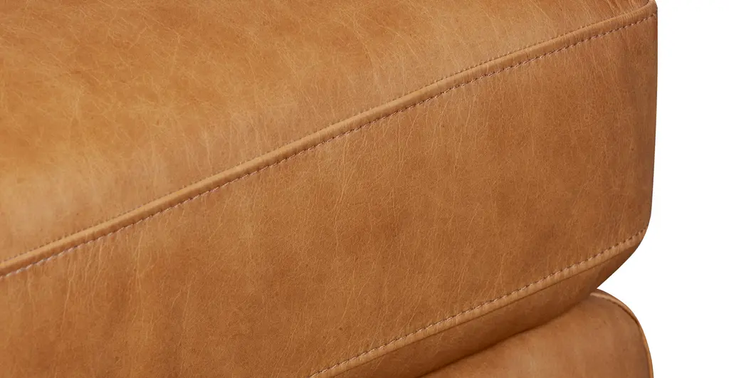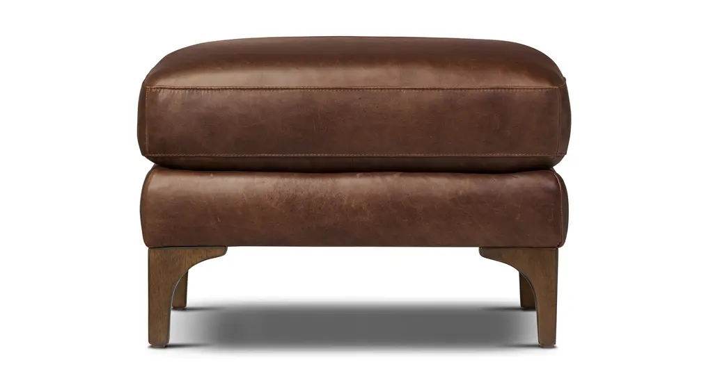 Elevate your space with the versatile Sorrento ottoman. Clad in full-grain Italian leather, it's more than an ottoman—it's a conversation starter. A sturdy wood frame ensures longevity, while its unique vintage patina adds character over time. With solid wood legs in a walnut finish, it doubles as a sophisticated coffee table, embodying timeless elegance.