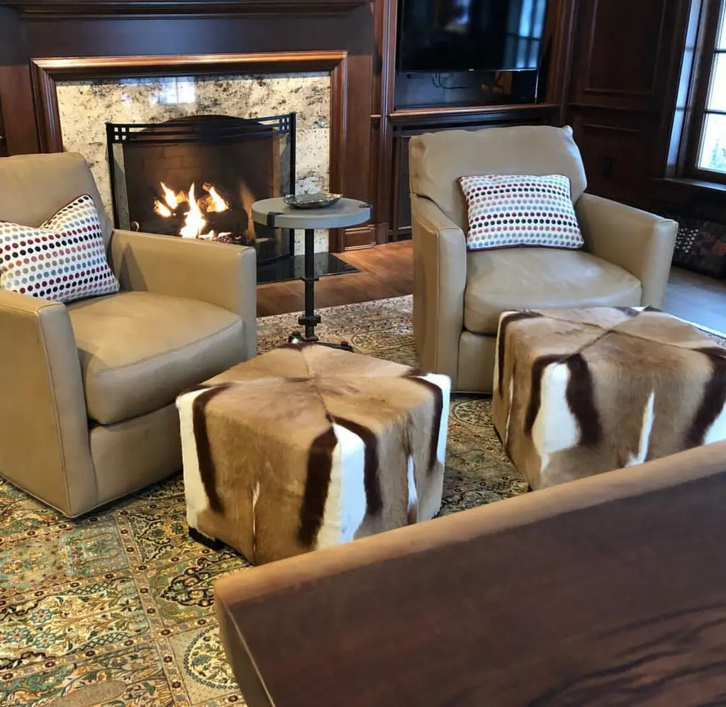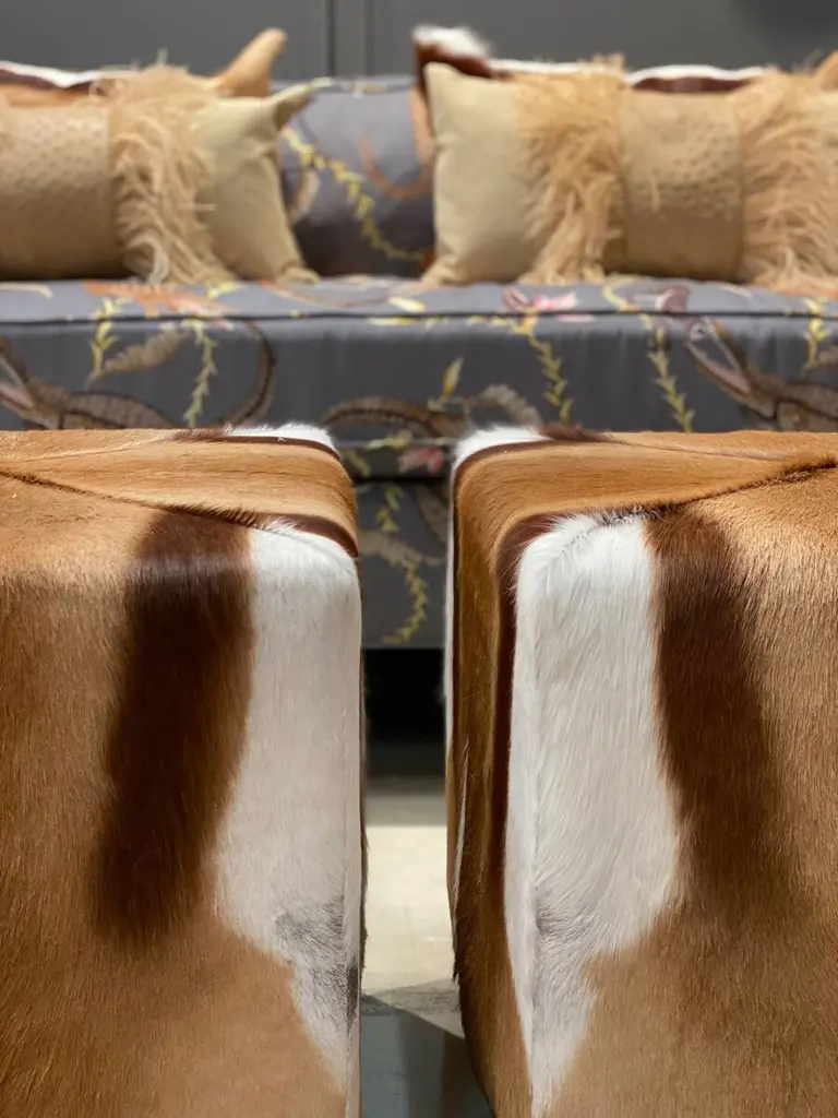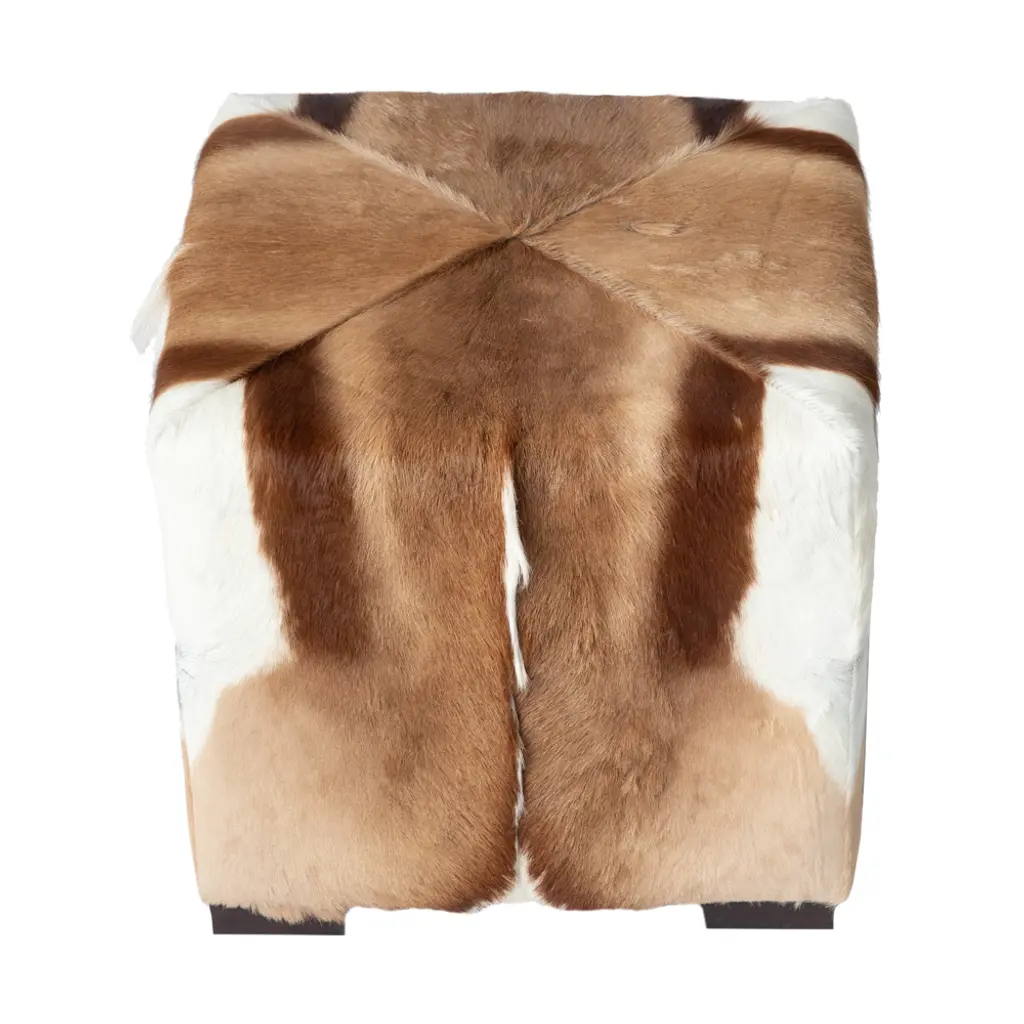 Hand-made in Africa with ethically-sourced Springbok hide, each Springbok Hide Cube Ottoman is created with four unique hides chosen to craft a unique, contemporary piece.