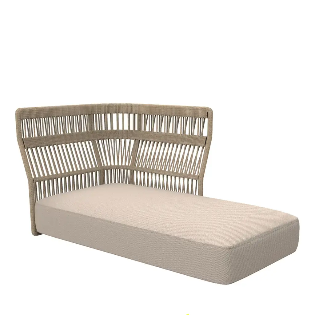 Belgian designer Mathias de Ferm brings an eye for architectural detail to the Striata collection. Distinguished by a barrelback silhouette wrapped in handwoven all-weather rope, the collection features a refined carved detail on a sustainably harvested premium solid teak frame. A slender opening at the back allows for a whisper of light to stream through. Luxury, reticulated seat cushions offer optimum performance and comfort. Frame is guaranteed for life. ALSO AVAILABLE IN ALUMINUMSHOP THE ENTIRE COLLECTION