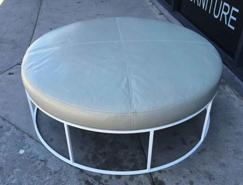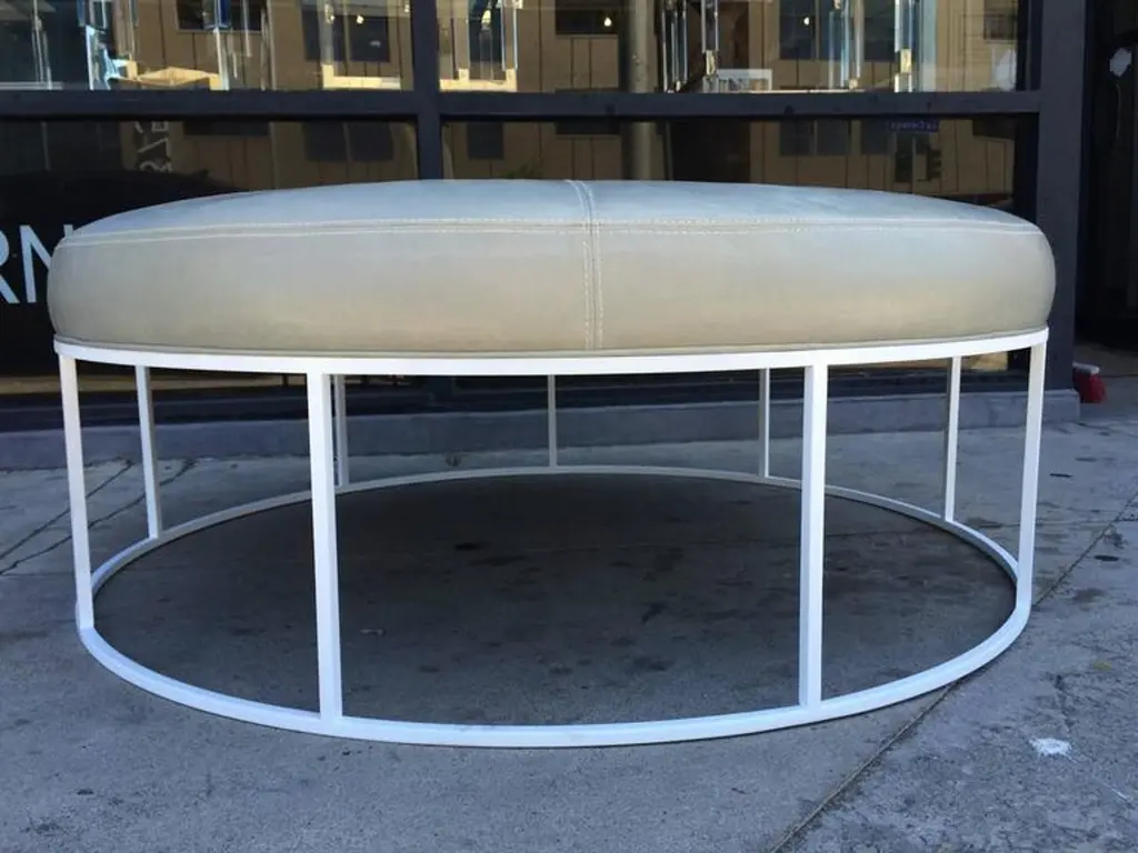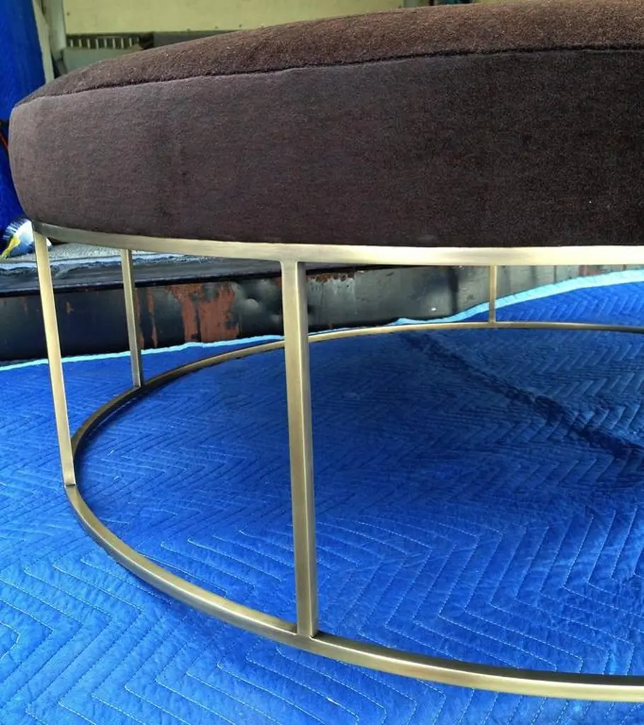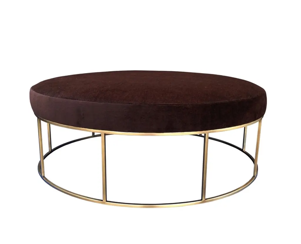 Stunning Custom Designed Round Ottoman With Solid Brass Base