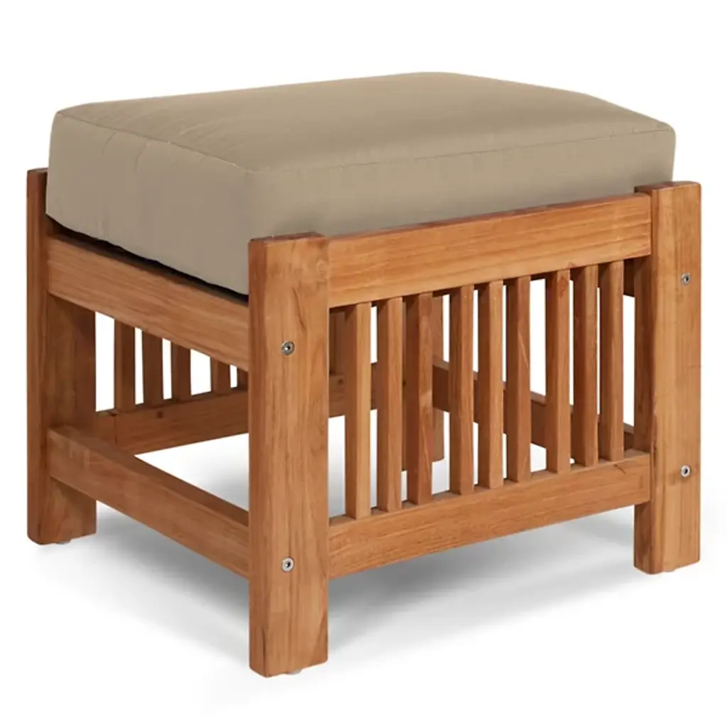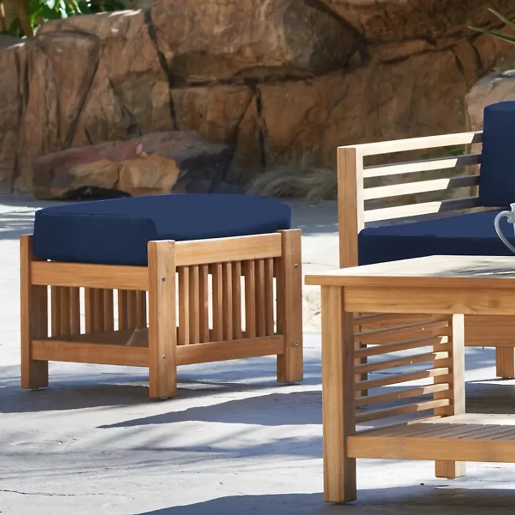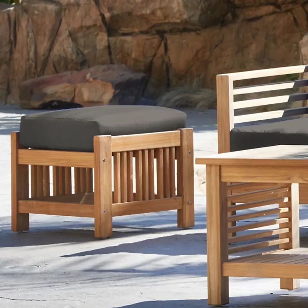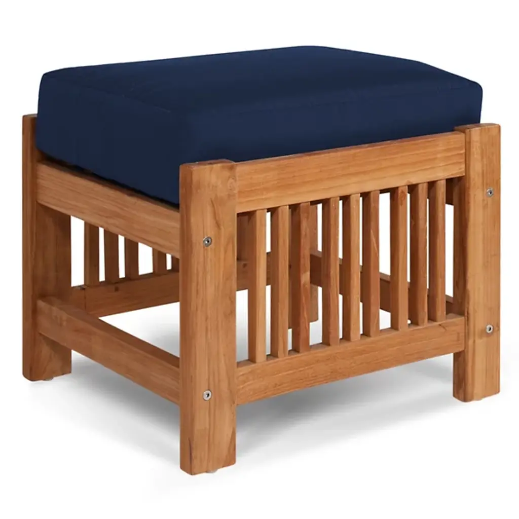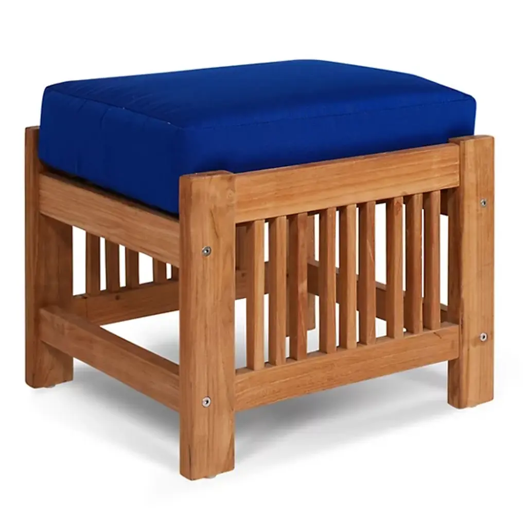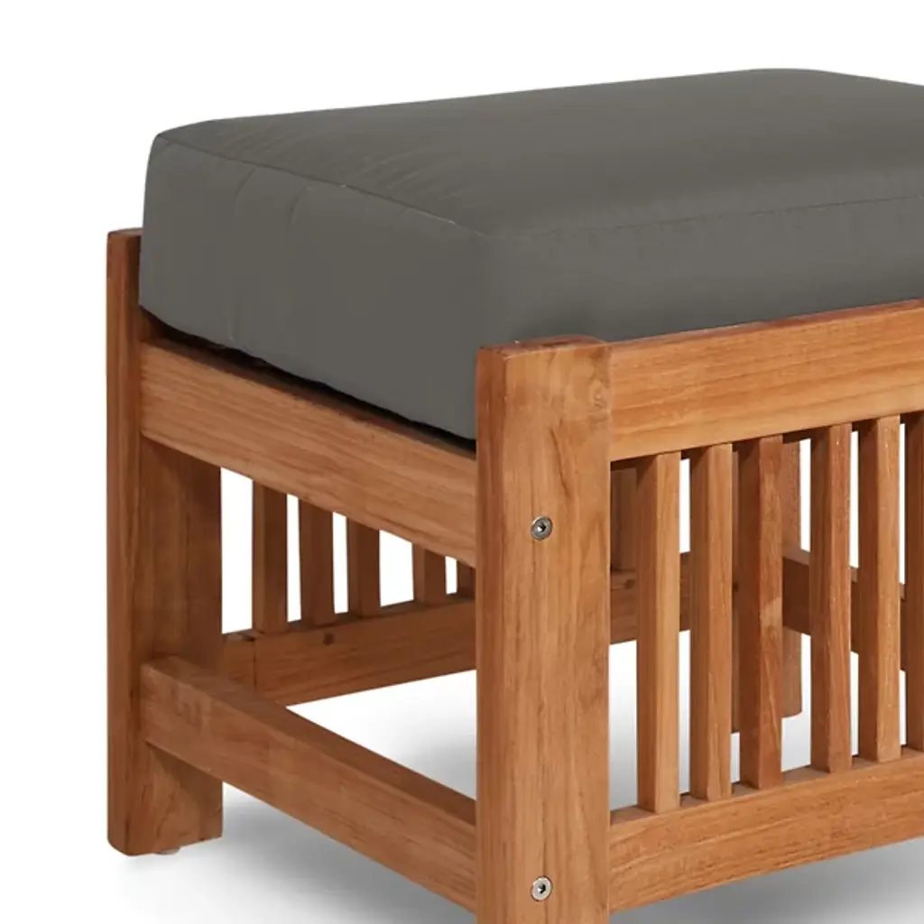 Sit back and enjoy the outdoors with help from the Summer Outdoor Ottoman from HiTeak Furniture. Complete the look of a poolside lounge area or patio with a warm and approachable design featuring a barred frame made of natural teak wood. A square cushion upholstered in sunbrella fabric offers a comfortable resting space that can be easily moved around the area to suit the space while its durable composition ensures quality that will last for years to come.