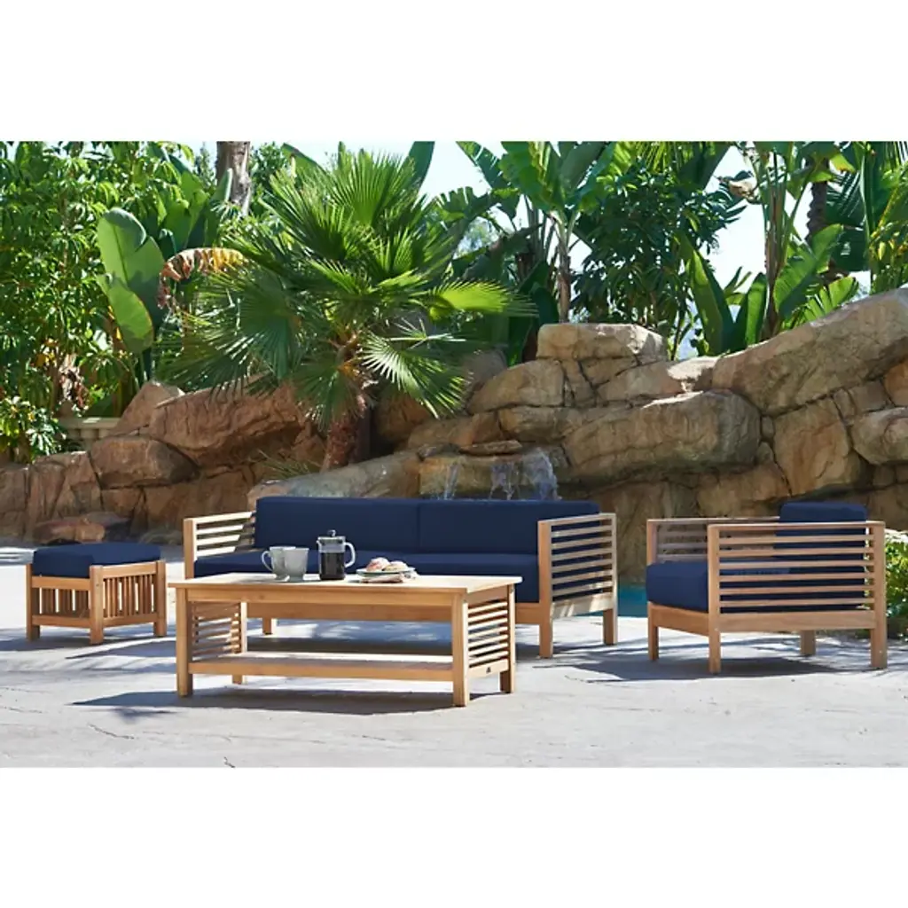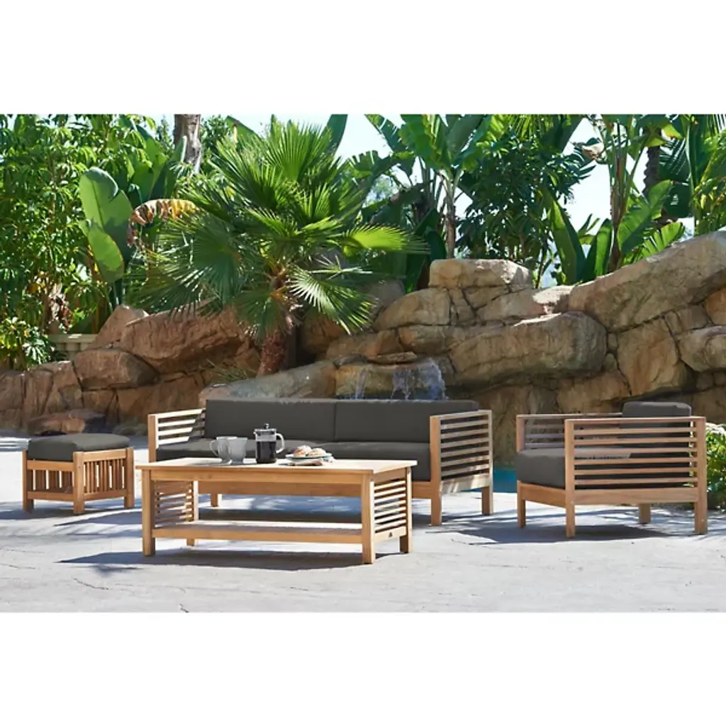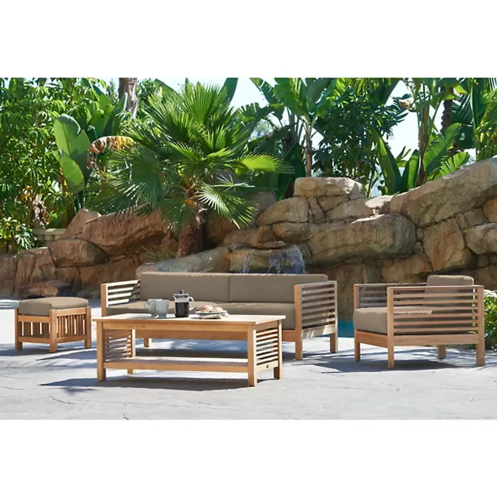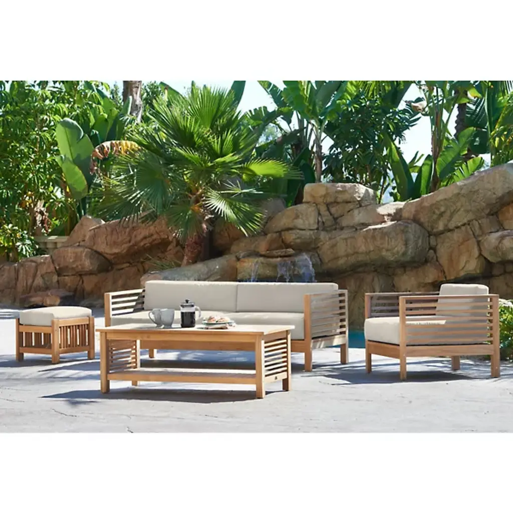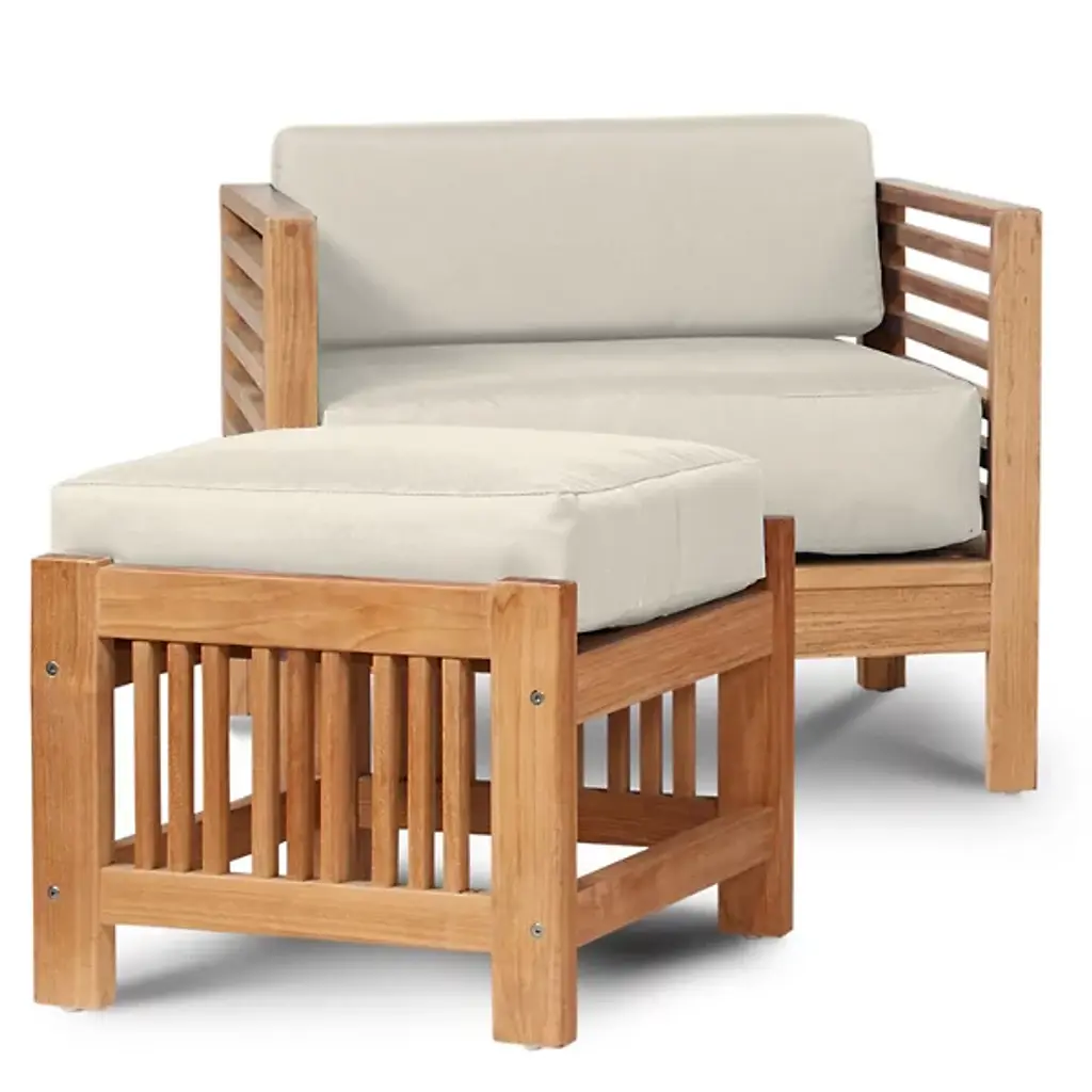 Sit back and enjoy the outdoors with help from the Summer Outdoor Ottoman from HiTeak Furniture. Complete the look of a poolside lounge area or patio with a warm and approachable design featuring a barred frame made of natural teak wood. A square cushion upholstered in sunbrella fabric offers a comfortable resting space that can be easily moved around the area to suit the space while its durable composition ensures quality that will last for years to come.