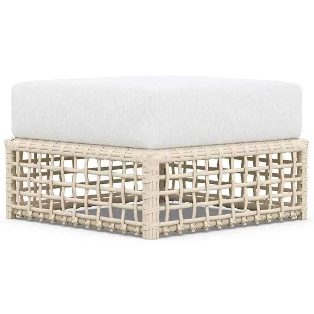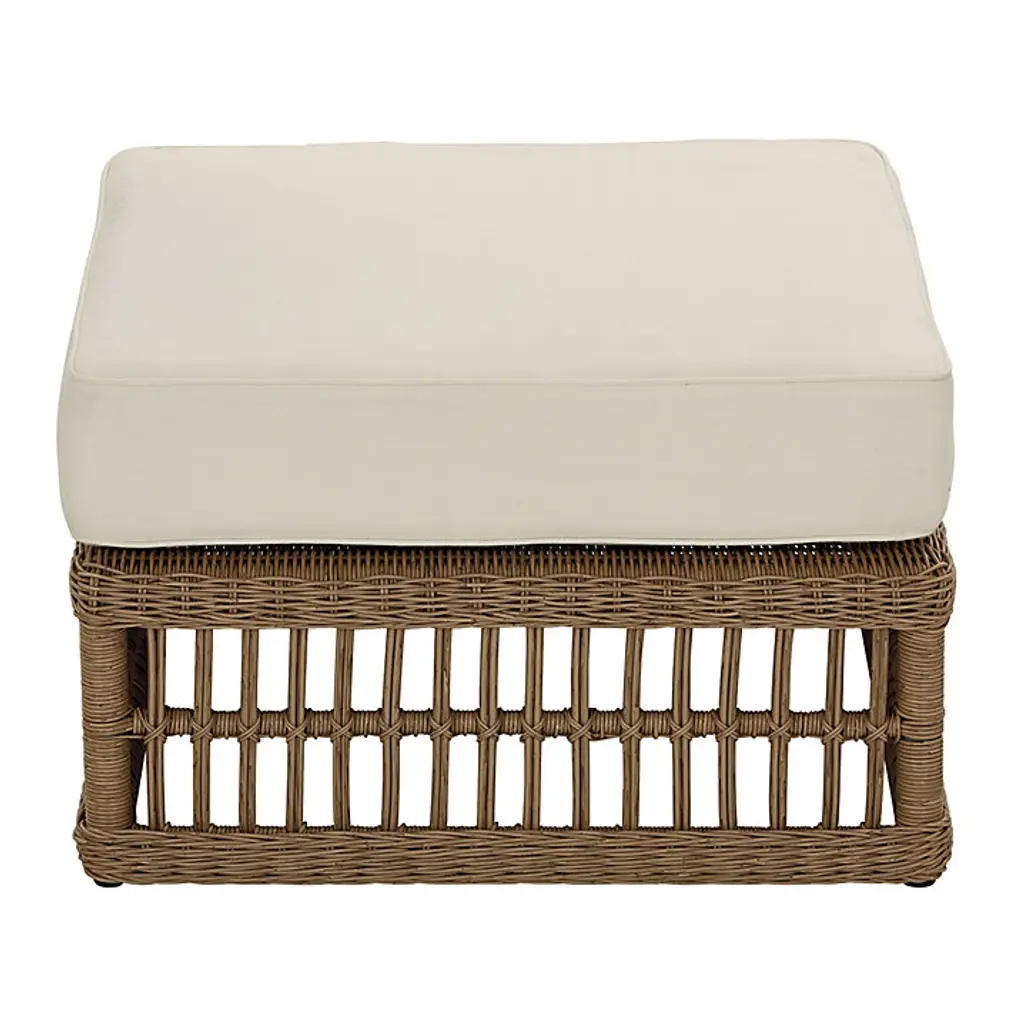 “I love to incorporate rattan furnishings and natural texture into my spaces for a timeless, casual style," says our design partner, Suzanne Kasler. "My new Harbour collection is designed for outdoor living and offers the versatility to be layered in with existing furnishings for a collected look.” Suzanne's Harbour Ottoman is intricately hand woven of all-weather rattan with airy linear details around the base for a beautiful view from every angle. This versatile piece is just the right size to double as an extra pull-up perch. Comfy Off White box-edge polyester cushion included. Suzanne Kasler Harbour Ottoman features: Harbour Replacement Cushion features: