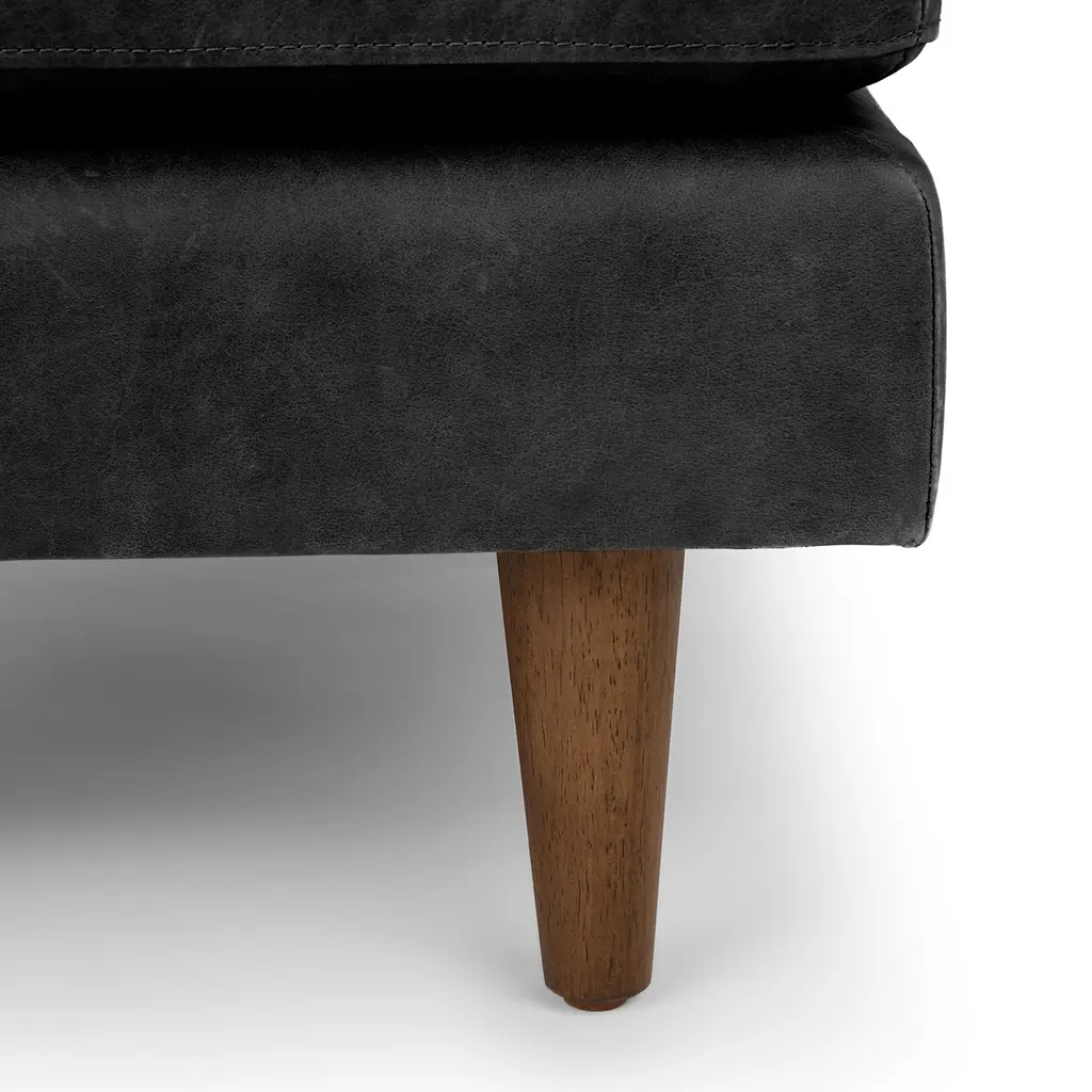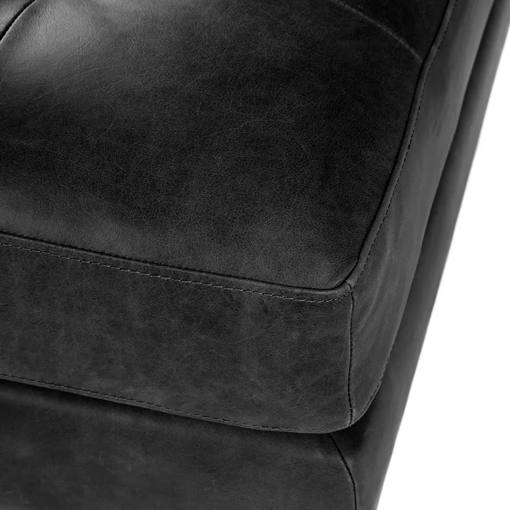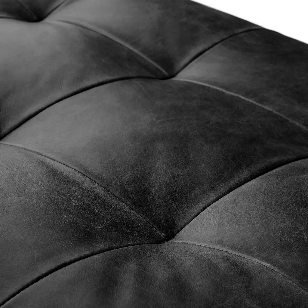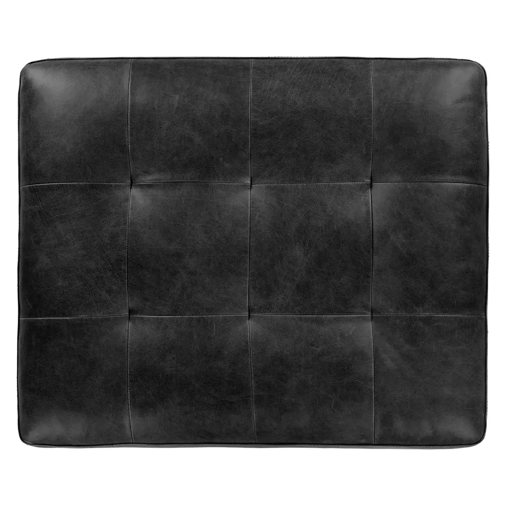 The Sven Ottoman in Oxford Black is your new BFF. The tufted topper supports short and long legs alike. Over time, the semi-aniline leather will develop a beautiful vintage patina. Sturdy and adaptable, this black leather ottoman is a great supporting character in your living space. Natural color variations, wrinkles and creases are part of the unique characteristics of this leather. It will develop a relaxed vintage look with regular use.