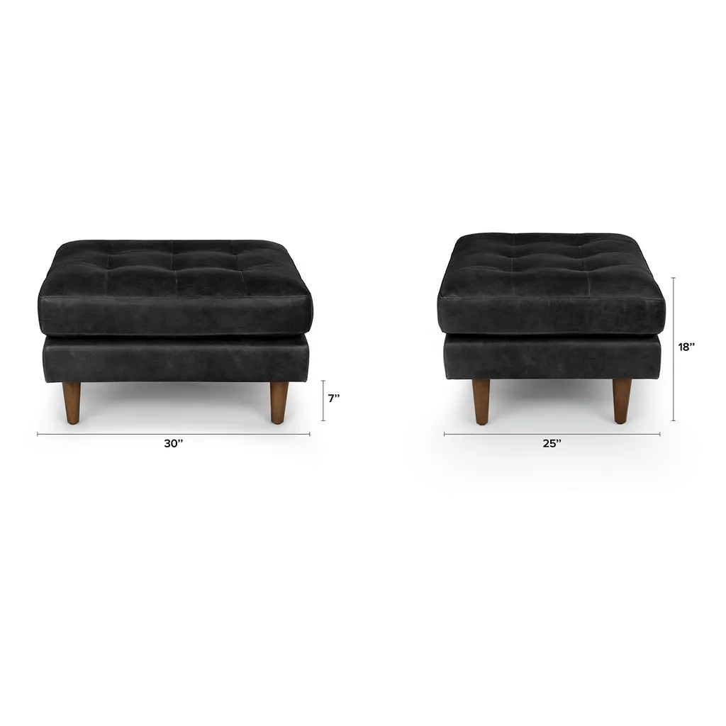Sven 30" Leather Ottoman - Oxford Black