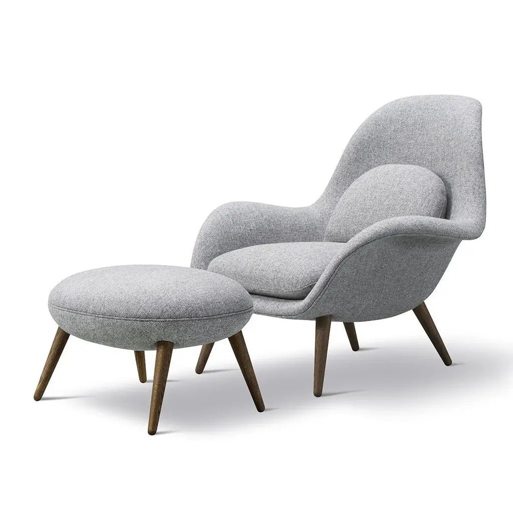 Fredericia now presents a fully-upholstered ottoman to supplement the Swoon Chair; creating a sophisticated lounge set that invites hours of comfort.