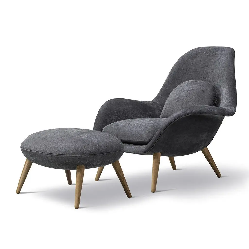 Fredericia now presents a fully-upholstered ottoman to supplement the Swoon Chair; creating a sophisticated lounge set that invites hours of comfort.