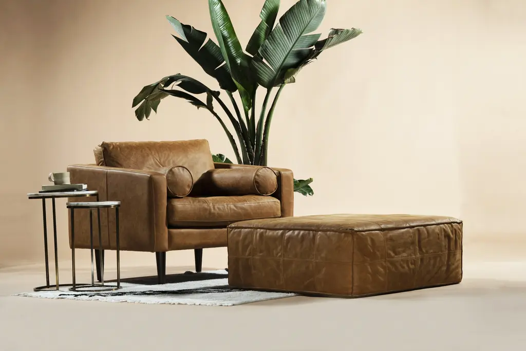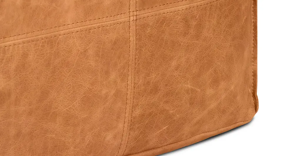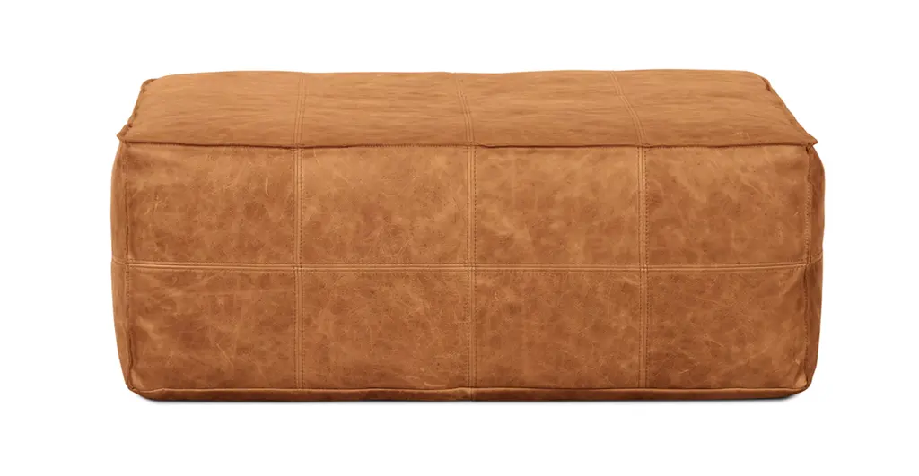 Rugged luxury meets cozy comfort in this versatile ottoman, which provides the perfect perch for everything from an elegant serving tray to your feet. Designed to complement your sofa or accent chair, or to shine on its own as a coffee table, the Taos boasts Italian leather upholstery that’s pure-aniline dyed in a chic shade of cognac tan that showcases the hide’s natural scuffs, scratches and textures, and patinas beautifully over time. Even better, the single-block, high-density foam core construction means you can set up your living room in style, while also keeping it kid-friendly—no sharp edges or surfaces to worry about here.