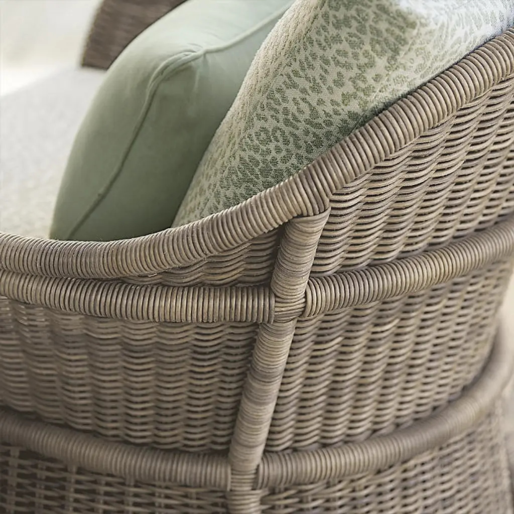 Comfortably oversized with soft curves and a lower profile, Terrace Park is the perfect blend of classic and transitional style. Strands of all-weather, high-density polyethylene wicker are handwoven over a powdercoated aluminum frame to create outdoor seating that will look great for years to come and resist rust, even in harsher climates. Included cushions are upholstered in 100% solution-dyed acrylic fabric — the most colorfast and durable outdoor fabric on the market. Part of the Terrace Park Collection. Handwoven high-density polyethylene wicker for exceptional durability All-weather wicker is handwoven over a powdercoated aluminum frame Premium wicker construction resists mold, mildew, fading and splintering High-purity aluminum frame is exceptionally strong, yet lightweight enough to move around your outdoor space with ease Durable frame is powdercoated to protect against the elements Frame is backed by an industry-leading 10-year structural warranty Includes supportive seat cushion sized to provide a classic sit High-resiliency foam core seat cushions hold their shape with continued use 100% solution-dyed acrylic fabric resists mold, mildew and fading and is easy to clean Cushions also available with 100% waterproof Sunbrella® Rain performance fabric Arrives assembled Imported A Frontgate exclusive. At Frontgate, our primary focus is quality. We guarantee that every product we sell will stand up to the supreme test – our customers' satisfaction. To learn more about our policies, visit our Shipping & Processing, Returns & Exchanges and Warranty & Price Guarantee pages. Comfortably oversized with soft curves and a lower profile, Terrace Park is the perfect blend of classic and transitional style. Strands of all-weather, high-density polyethylene wicker are handwoven over a powdercoated aluminum frame to create outdoor seating that will look great for years to come and resist rust, even in harsher climates. Included cushions are upholstered in 100% solution-dyed acrylic fabric — the most colorfast and durable outdoor fabric on the market. Part of the Terrace Park Collection. Handwoven high-density polyethylene wicker for exceptional durability All-weather wicker is handwoven over a powdercoated aluminum frame Premium wicker construction resists mold, mildew, fading and splintering High-purity aluminum frame is exceptionally strong, yet lightweight enough to move around your outdoor space with ease Durable frame is powdercoated to protect against the elements Frame is backed by an industry-leading 10-year structural warranty Includes supportive seat cushion sized to provide a classic sit High-resiliency foam core seat cushions hold their shape with continued use 100% solution-dyed acrylic fabric resists mold, mildew and fading and is easy to clean Cushions also available with 100% waterproof Sunbrella® Rain performance fabric Arrives assembled Imported A Frontgate exclusive. At Frontgate, our primary focus is quality. We guarantee that every product we sell will stand up to the supreme test – our customers' satisfaction. To learn more about our policies, visit our Shipping & Processing, Returns & Exchanges and Warranty & Price Guarantee pages.