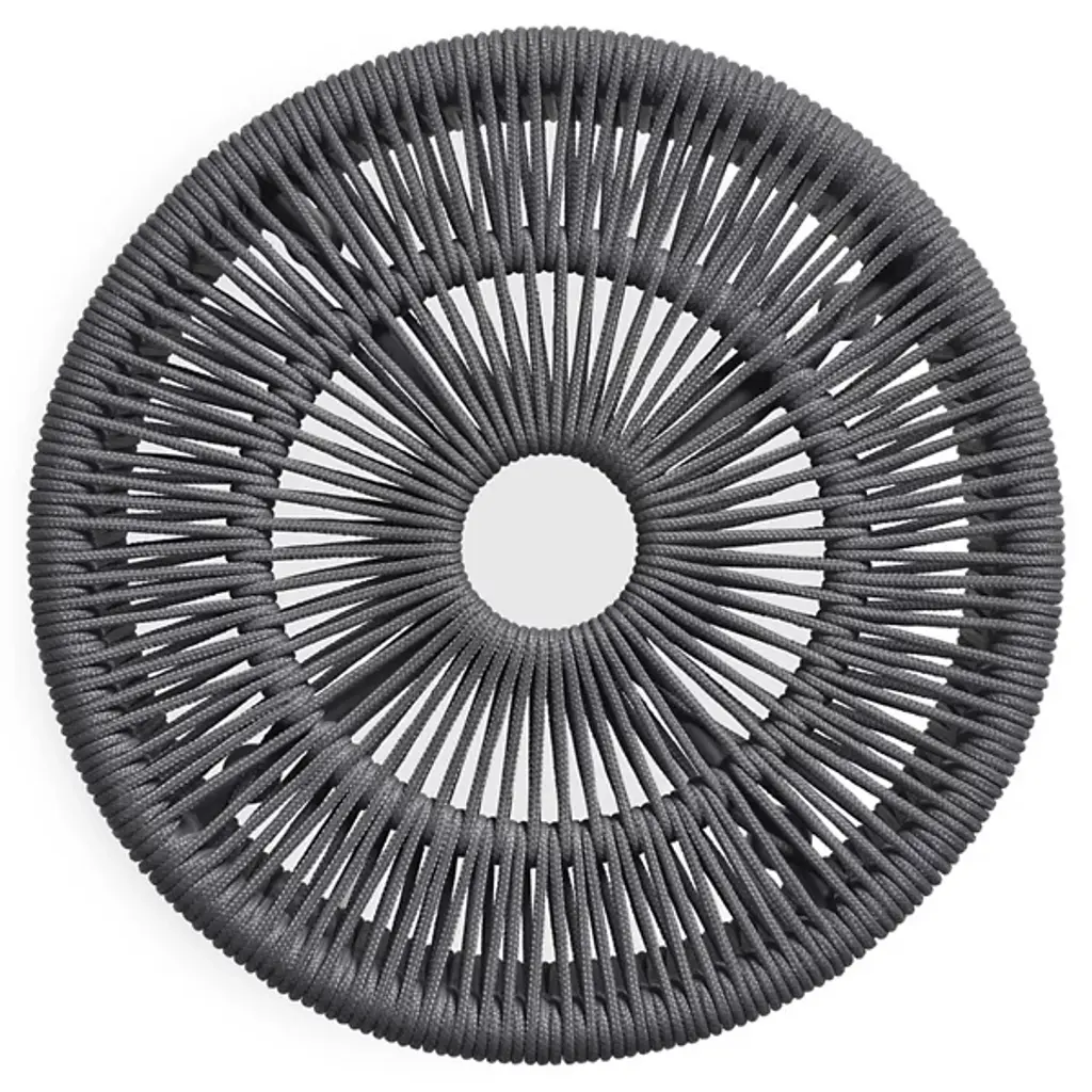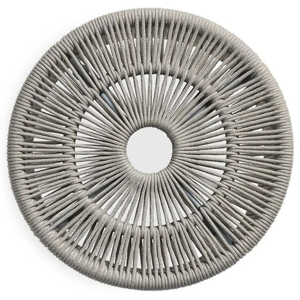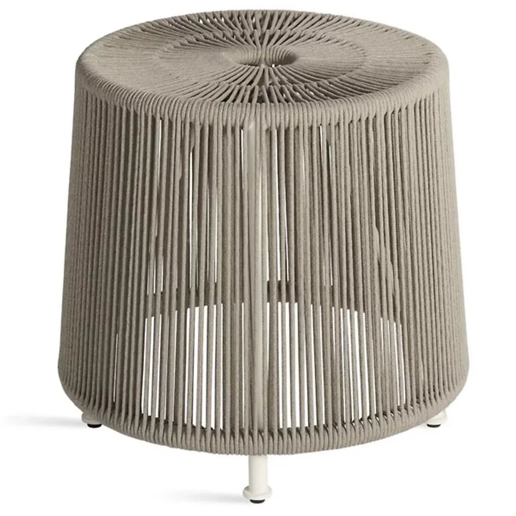 The Tether Outdoor Ottoman from Blu Dot showcases hundreds of individual rope strands that create continuous vertical texture around its perimeter. Each strand extends from top to bottom, forming a surface that invites touch while resisting weather damage. The lightweight aluminum frame provides corrosion resistance without adding unnecessary weight. This ottoman functions as extra seating for gatherings or as a footrest for lounging and ships fully assembled for immediate placement on patios, decks, or poolside areas.