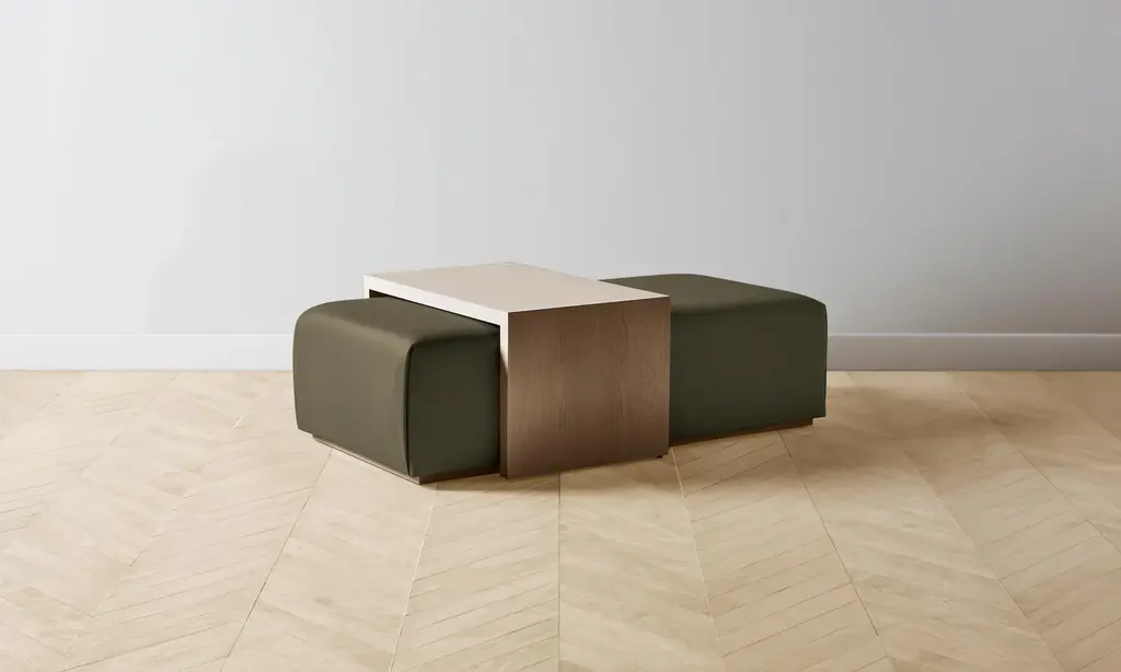 Designed to serve as an ottoman and a coffee table, the Bowery is masterfully upholstered and complete with a removable ash overlay—adding both softness and structure to your space. Handcrafted in North Carolina.